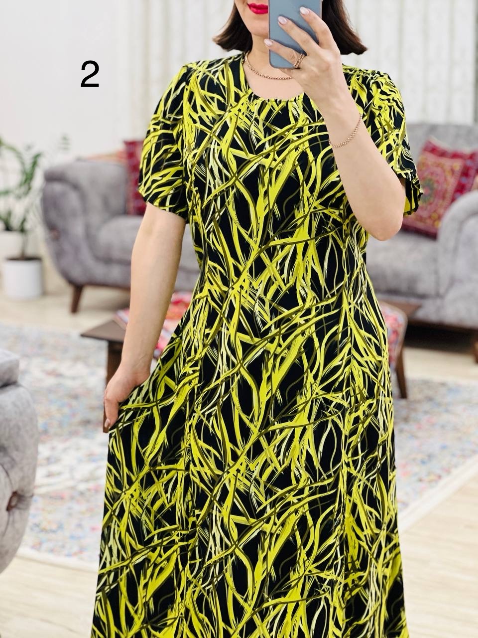 2 | مناسب 44 تا 46 / دور سینه 120 / دور باسن 134 / قد پیراهن 125 / سرشانه 12 / دور بازو 50 / قد آستین 26 |