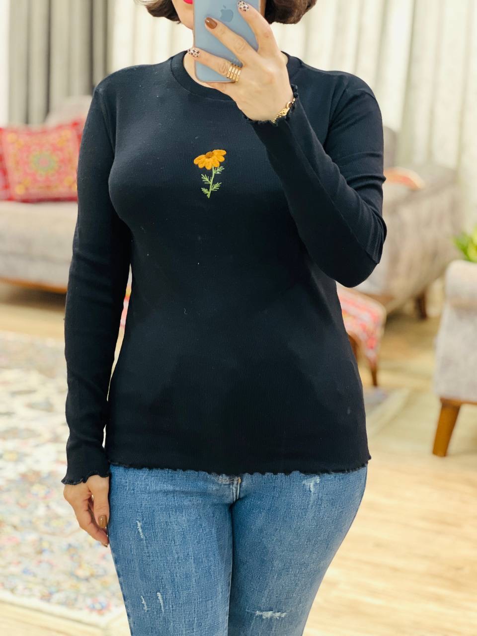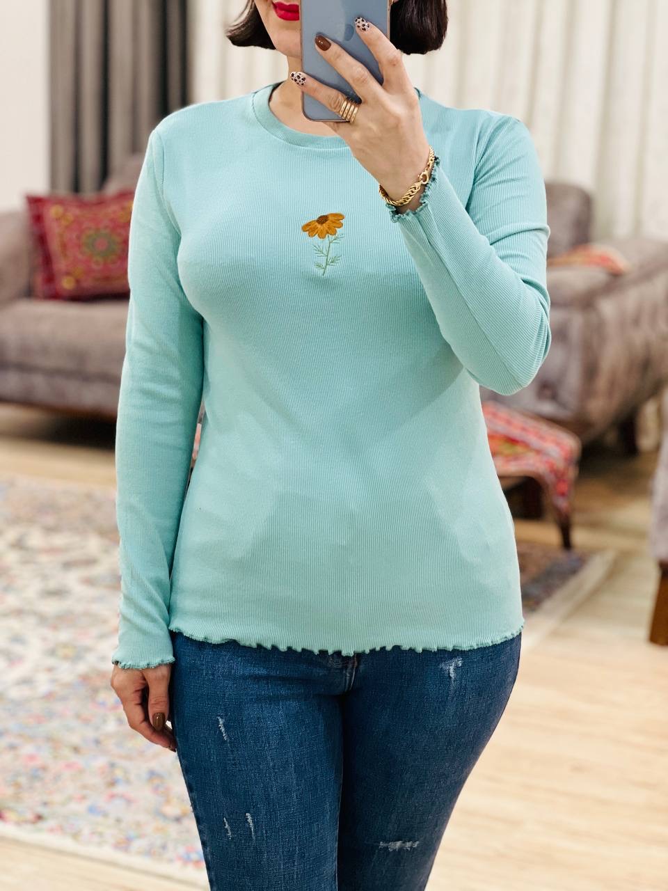 مناسب 36 تا 42 / دور سینه 90 / قد بلوز 60 / سرشانه 12 / قد آستین 60 / سانتها بدون کشسانی نوشته شده