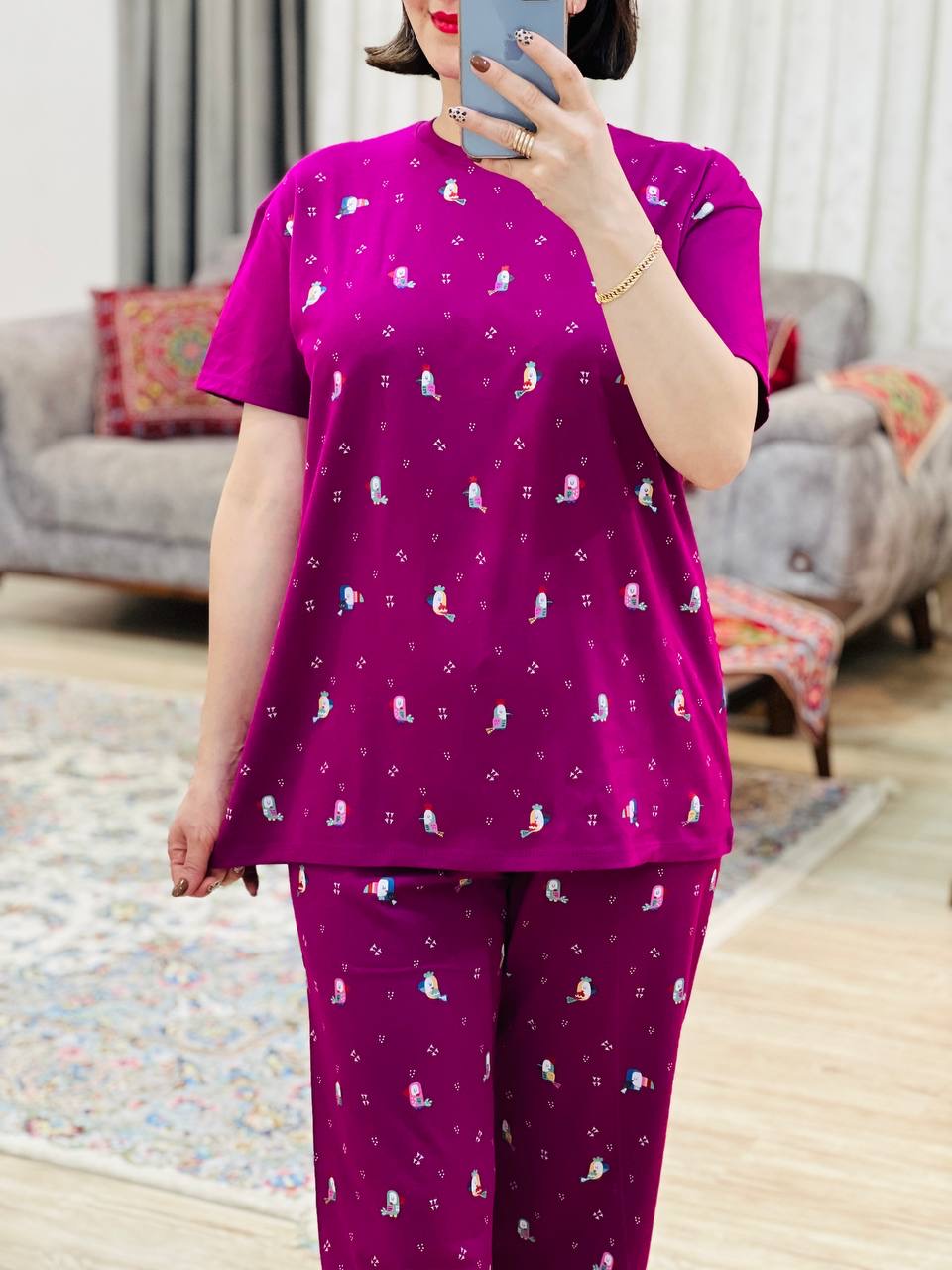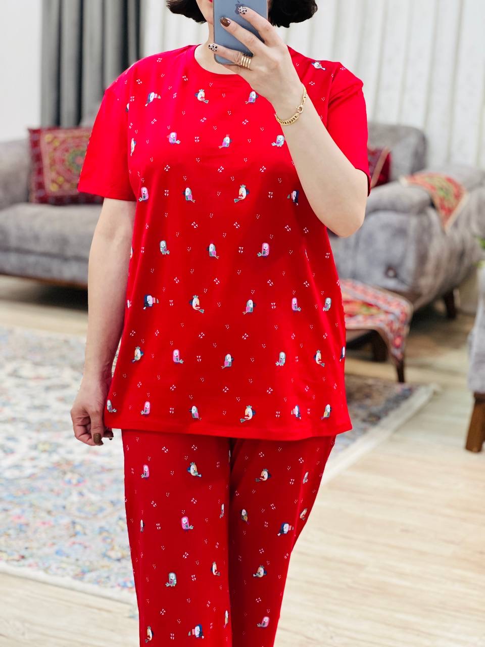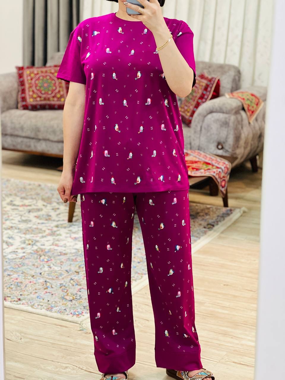 مناسب 38 تا 46 / دور سینه 112 / قد تیشرت 68 / قد آستین 17 /سرشانه 17 / قد شلوار 94 / فاق 31 / دور ران 64