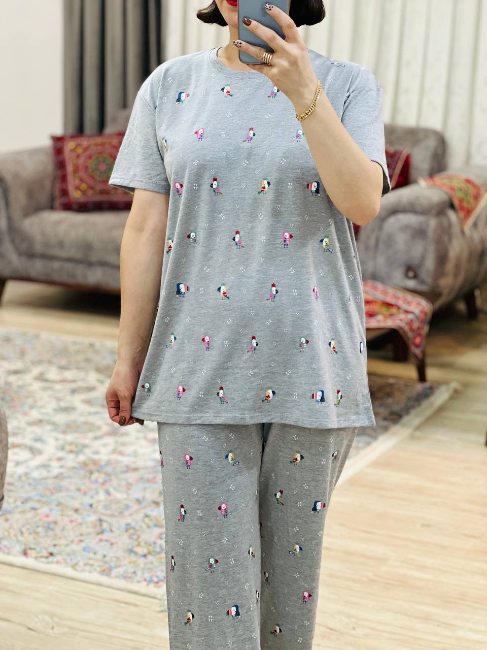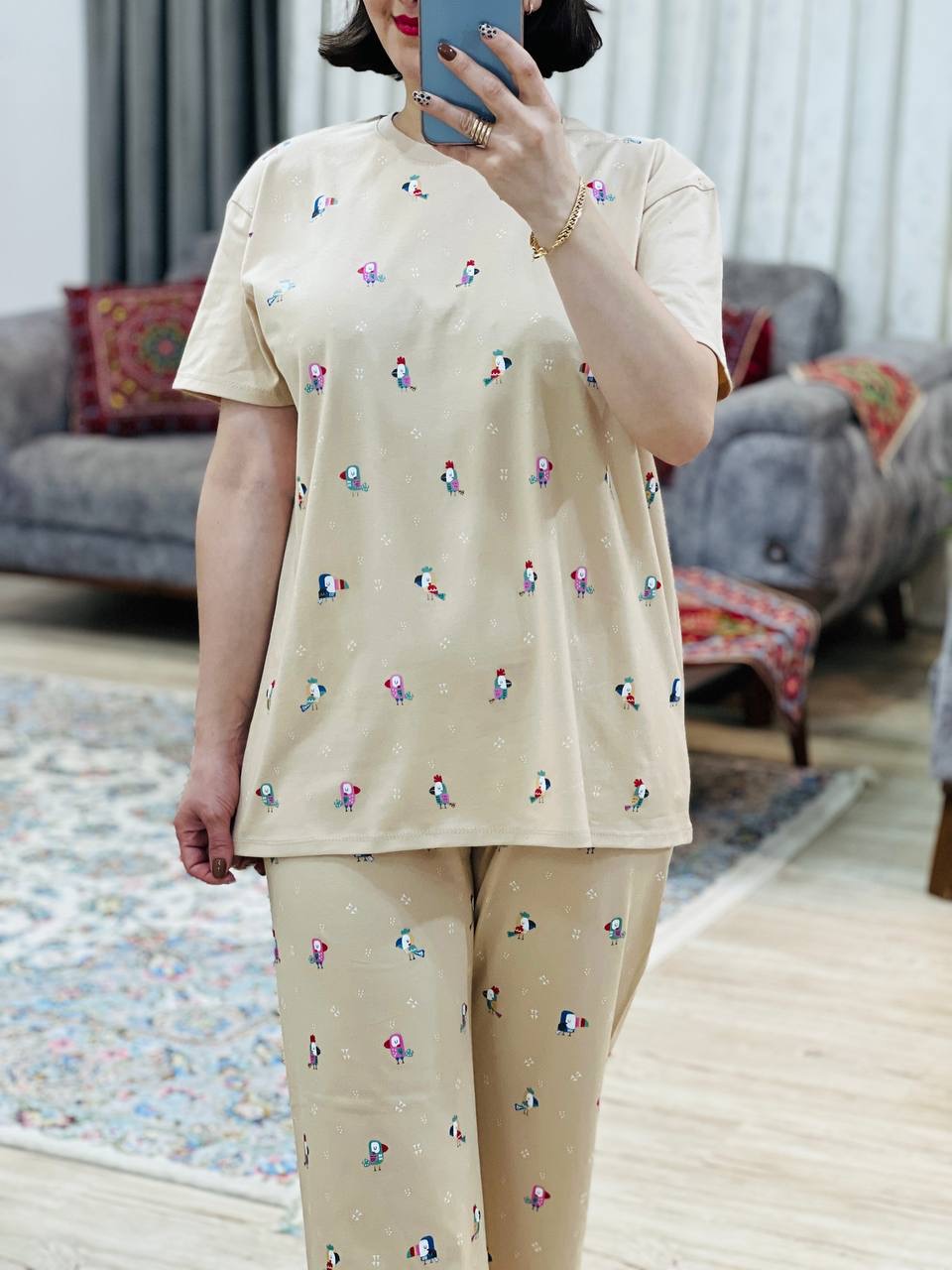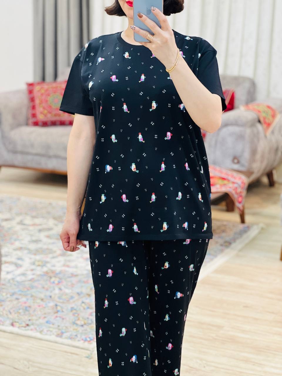 | فری سایز | مناسب 38 تا 46 / دور سینه 112 / قد تیشرت 68 / قد آستین 17 /سرشانه 17 / قد شلوار 94 / فاق 31 / دور ران 64 |