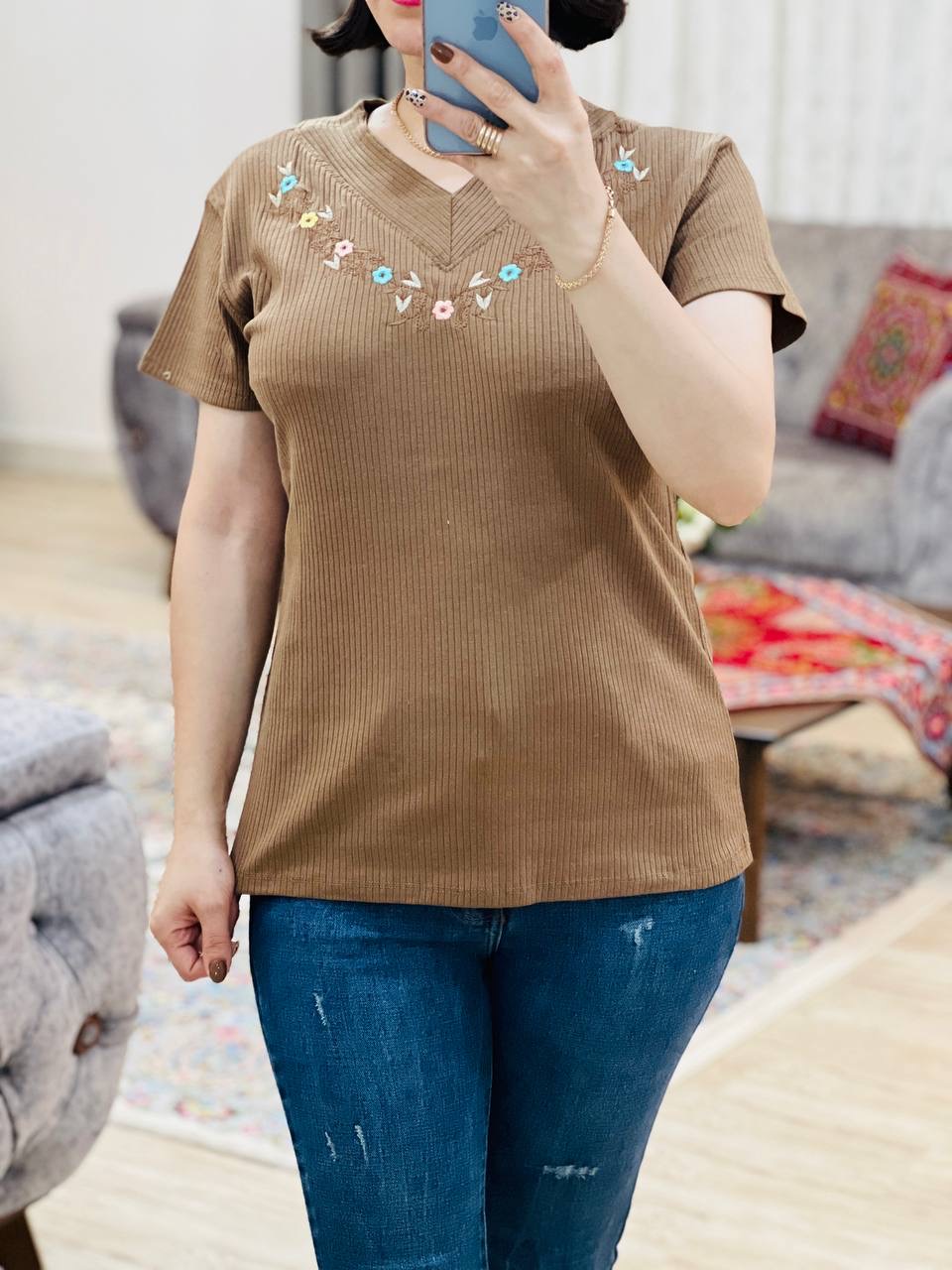 مناسب 36 تا 44 / دور سینه 90 / قد تیشرت 65 / قد آستین 14 / سرشانه 13 / تمام سانتها بدون کشسانی نوشته شده
