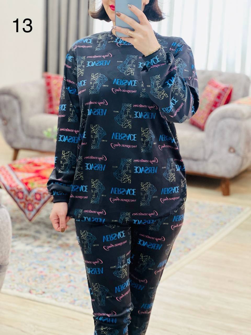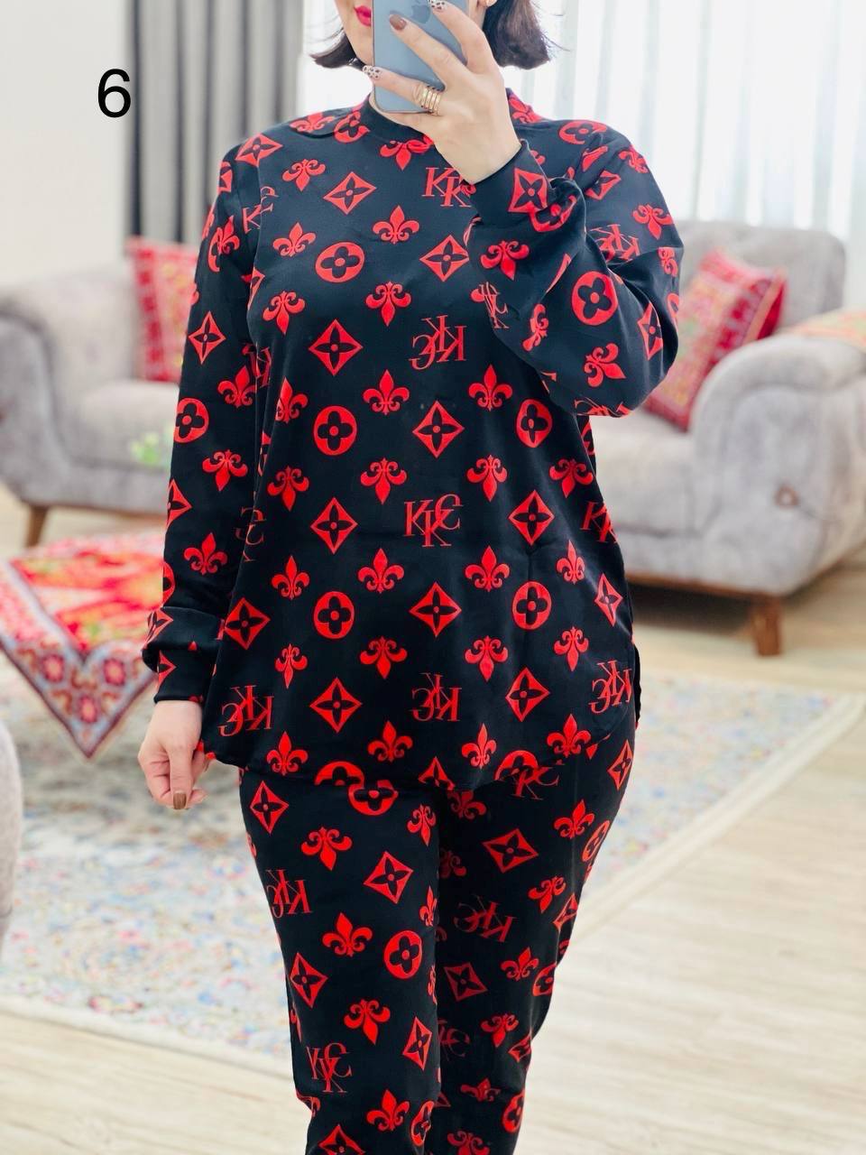 مناسب 40 تا 48 / دور سینه 110 / قد بلوز 68 / قد آستین 54 / سرشانه 14 / قد شلوار 95 / فاق 31 / دور ران 60 / تمام سانتها بدون کشسانی نوشته شده