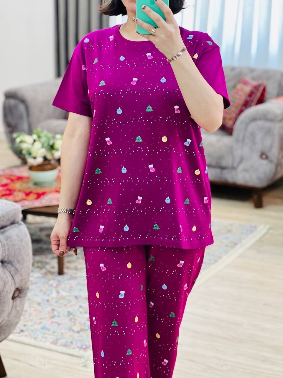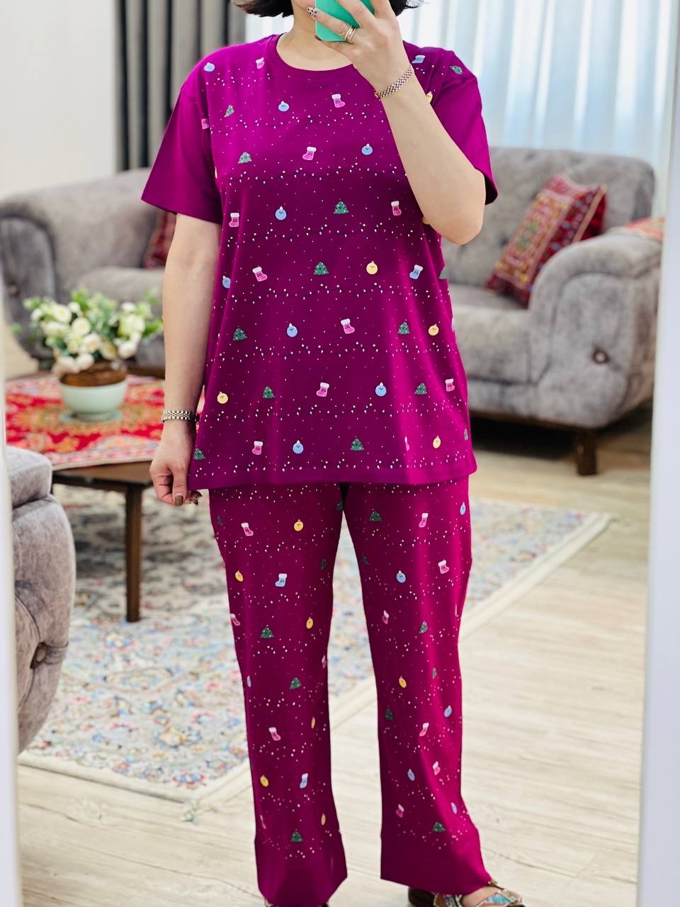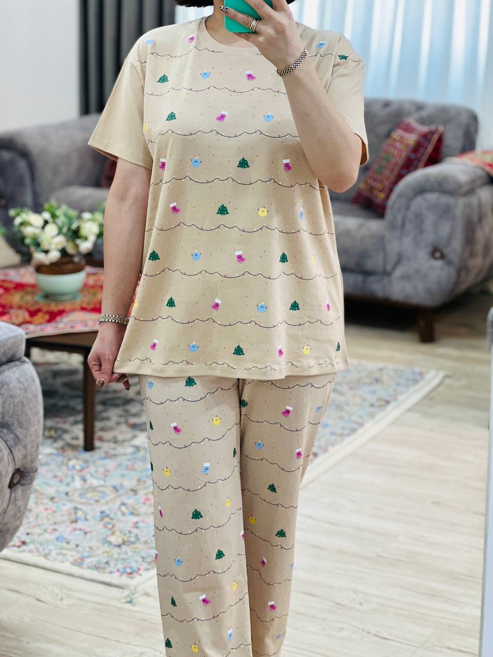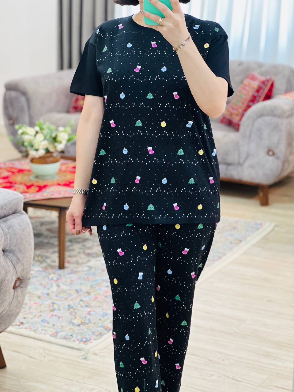 | فری سایز | مناسب 38 تا 46 / دور سینه 112 / قد تیشرت 68 / قد آستین 17 / سرشانه 17 / قد شلوار 94 / فاق 31 / دور ران 64 |
