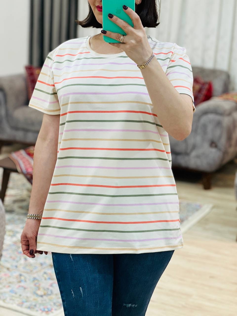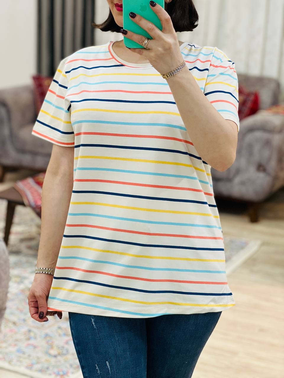 مناسب 38 تا 46 / دور سینه 108 / قد تیشرت 68 / قد آستین 19 / سرشانه 12