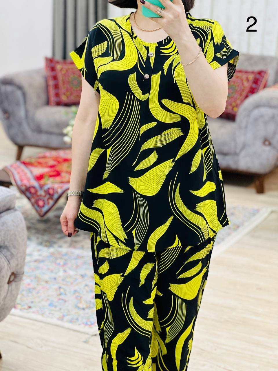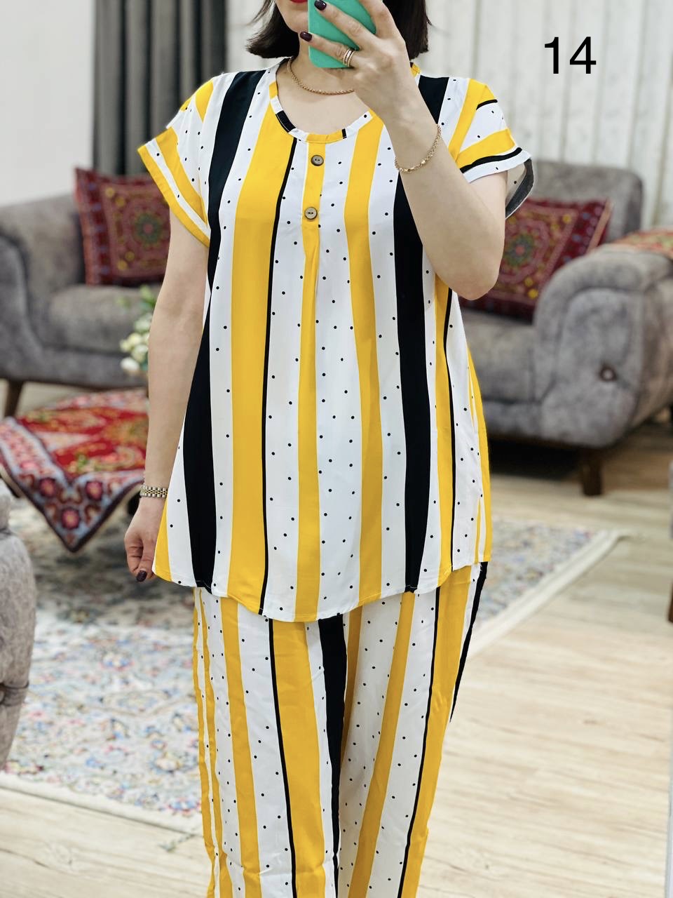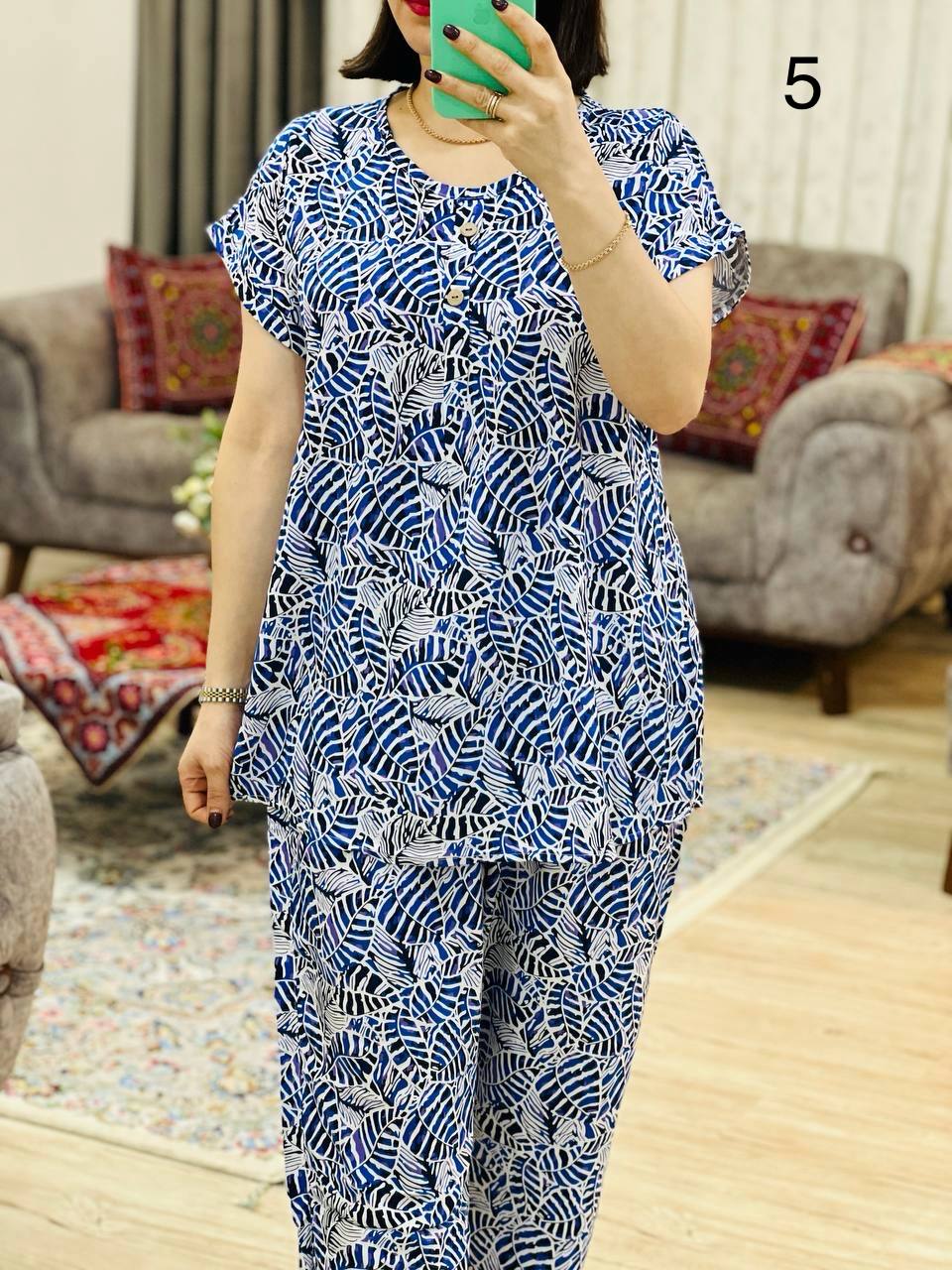 مناسب 38 تا 42 / دور سینه 108 / قد تیشرت 69 / قذ آستین از یقه 24 / دور باسن 116 / قد شلوار 98 / فاق 35 / دور ران 70