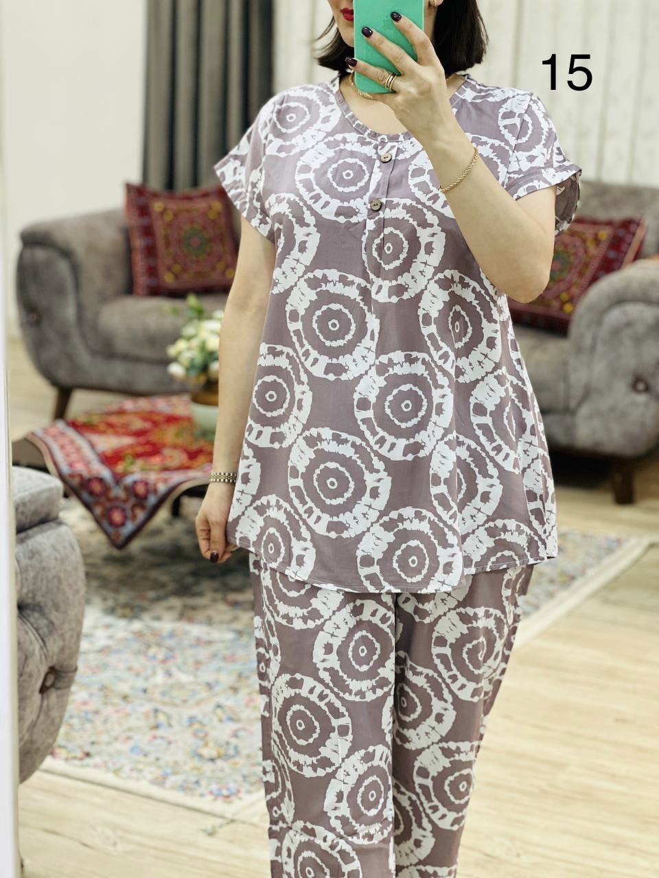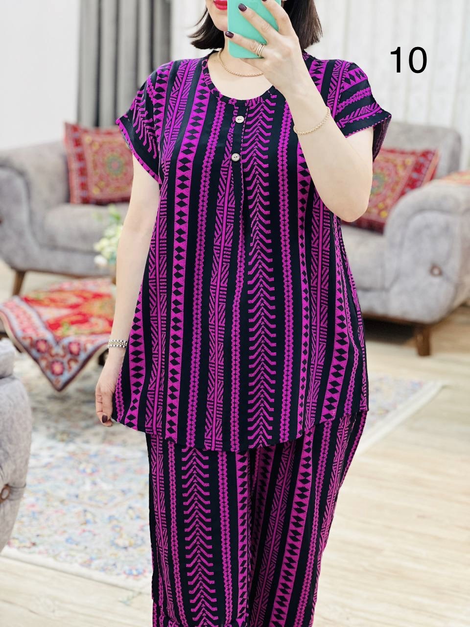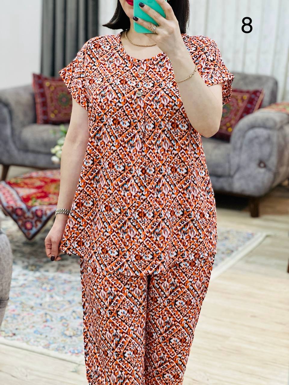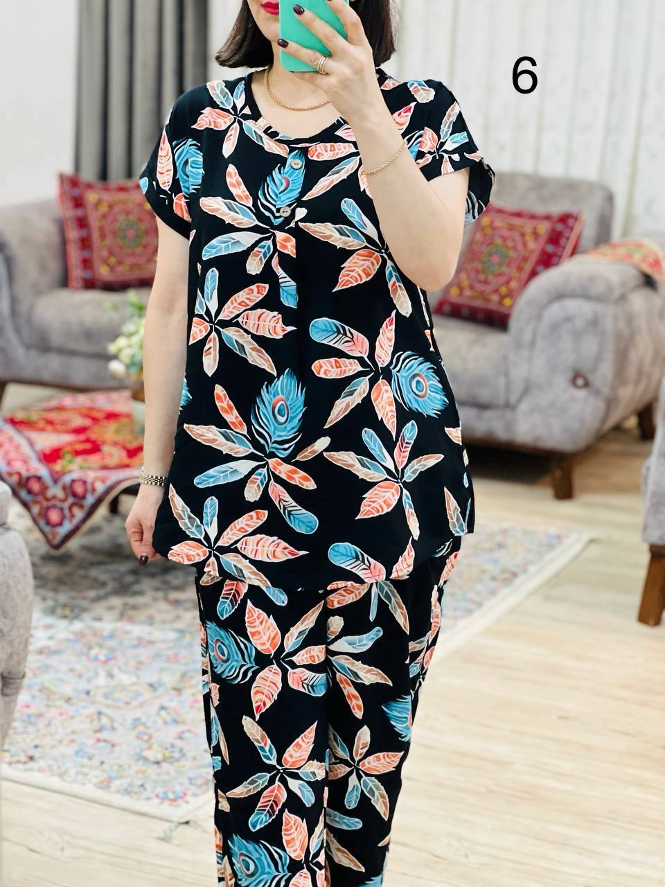مناسب 38 تا 42 / دور سینه 108 / قد تیشرت 69 / قذ آستین از یقه 24 / دور باسن 116 / قد شلوار 98 / فاق 35 / دور ران 70