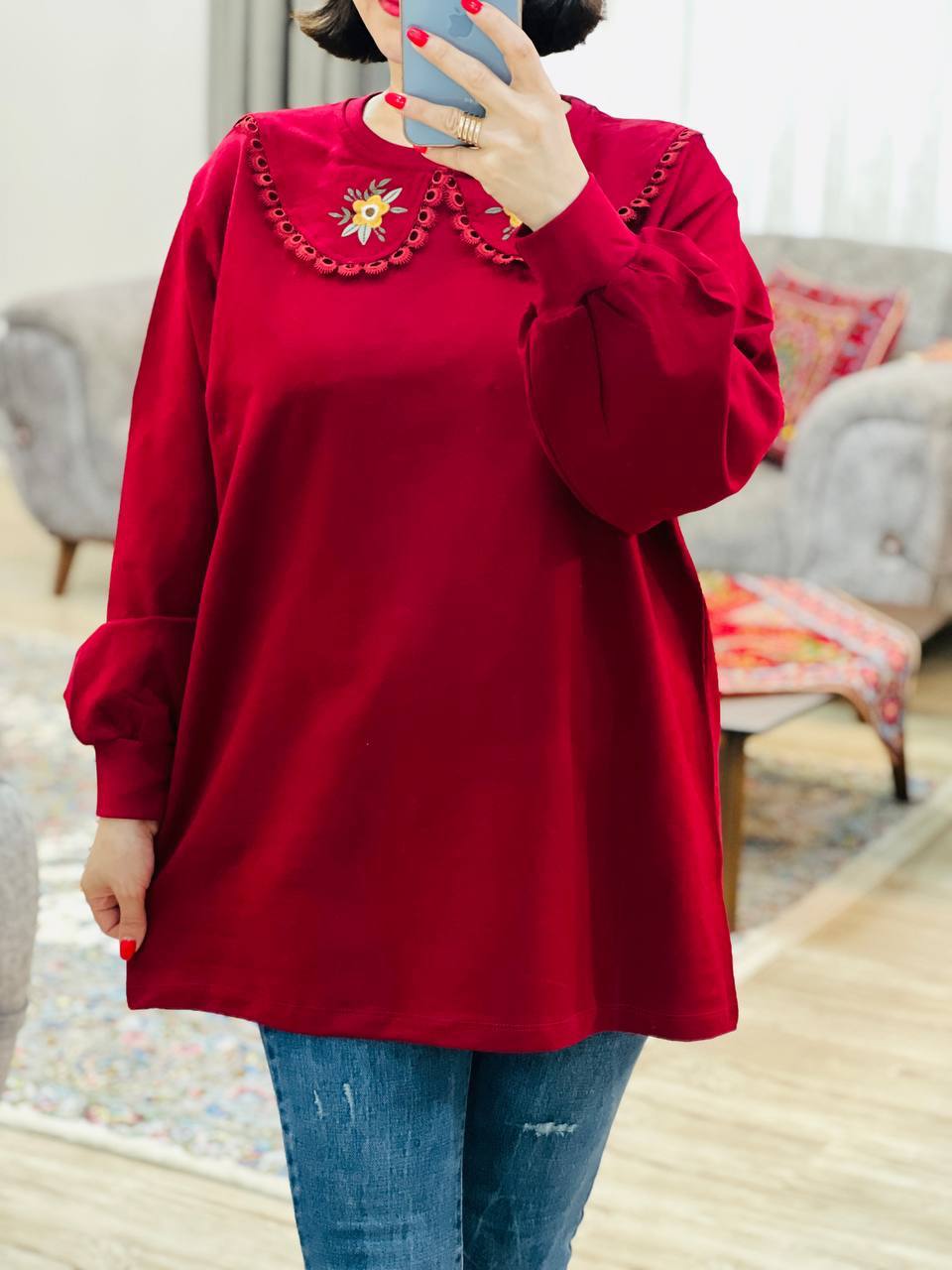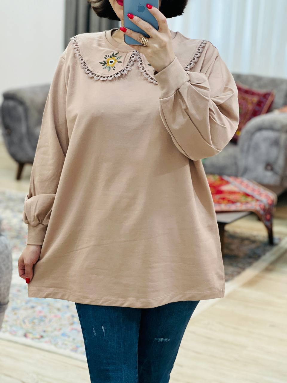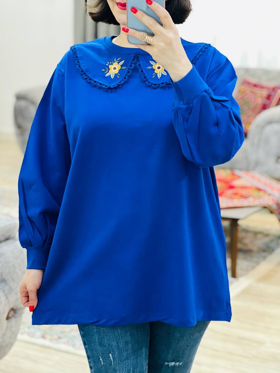 فری سایز مناسب 44 تا 52 / دور سینه 122 / قد بلوز 73 / قدآستین 52 / سرشانه 14