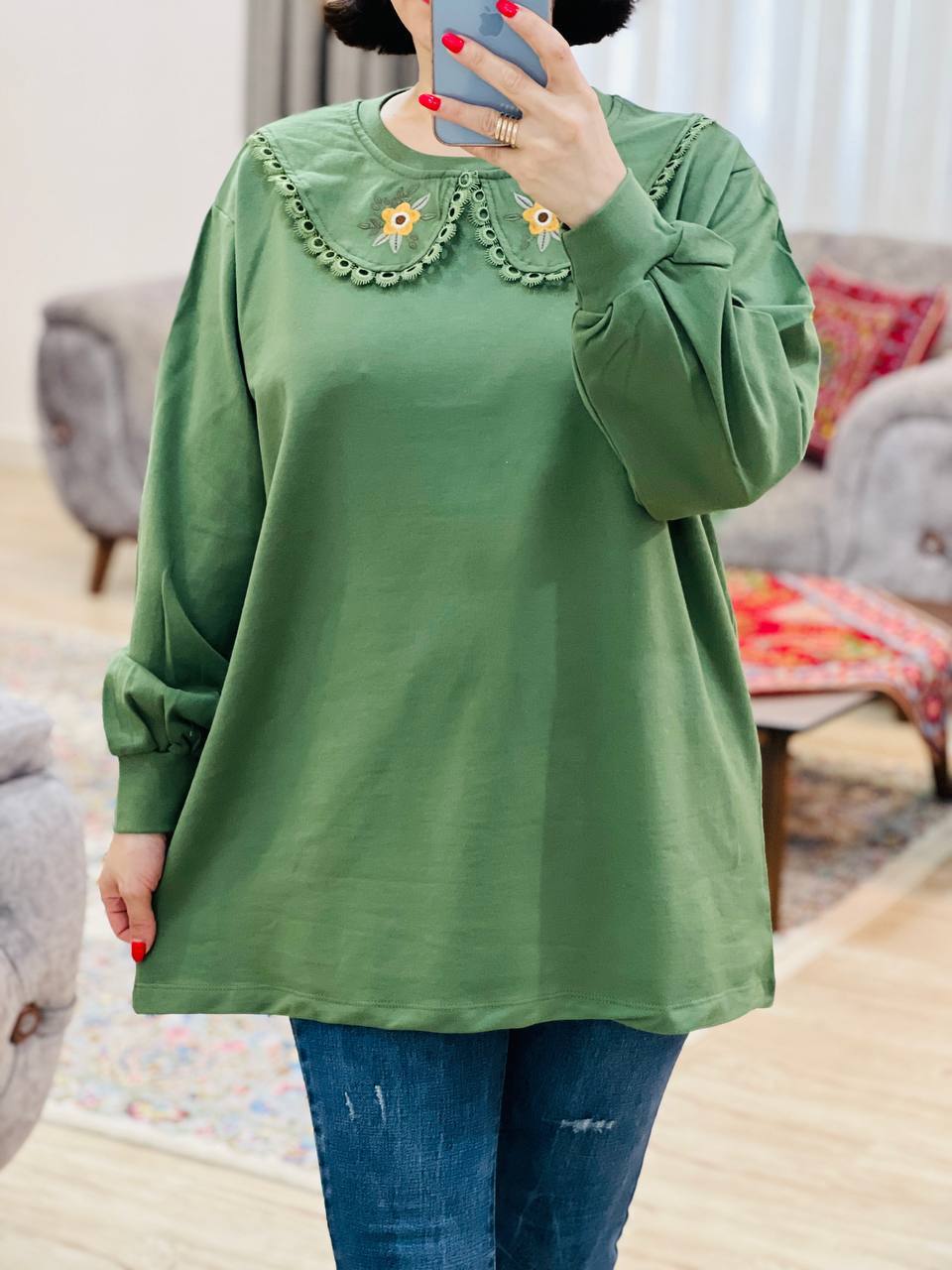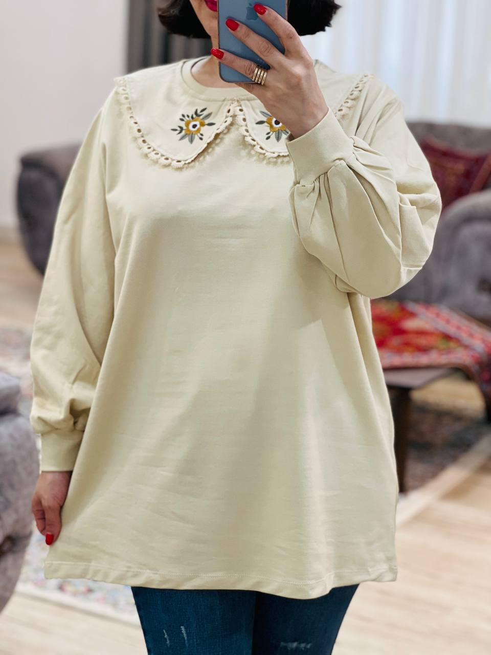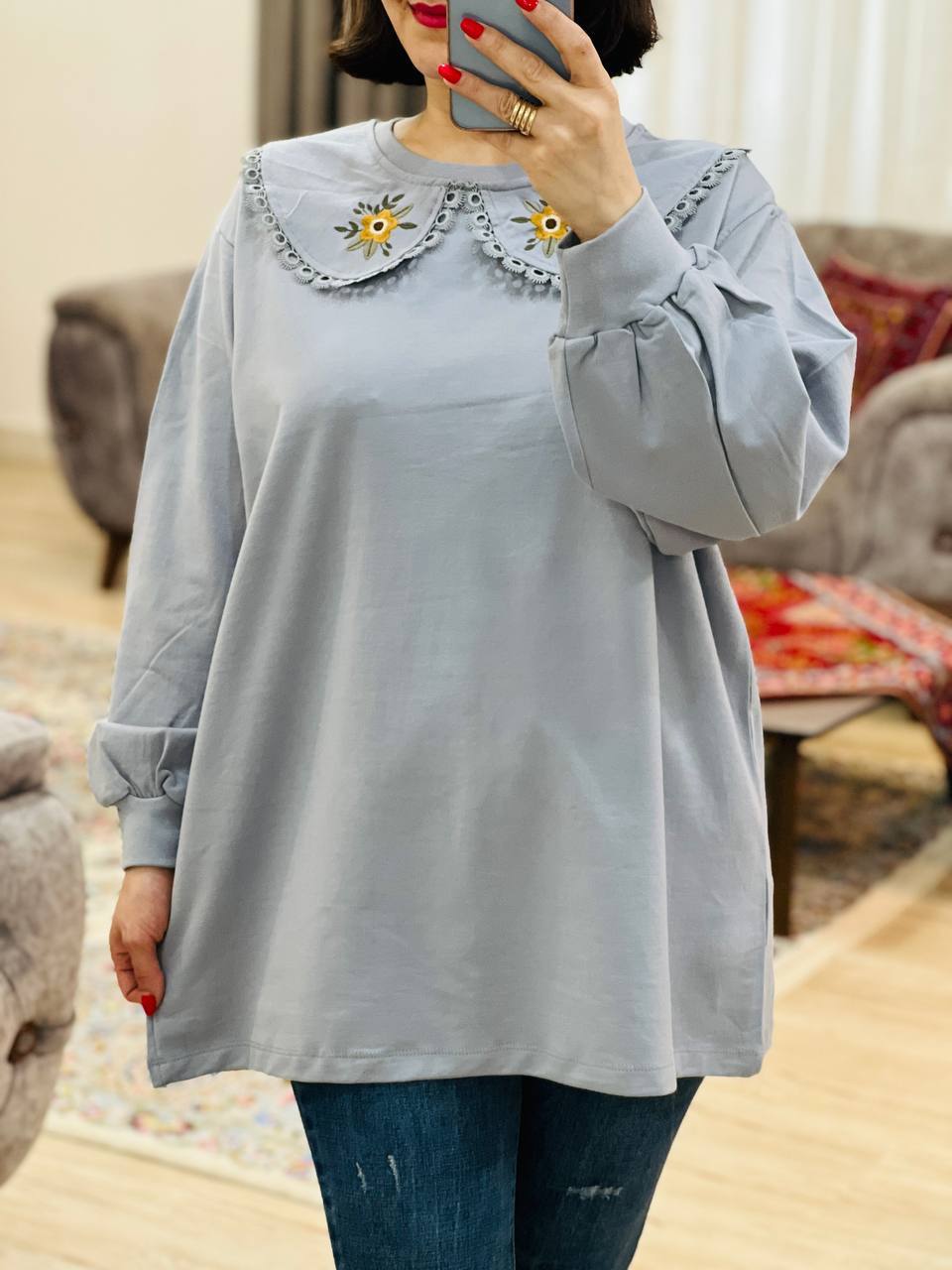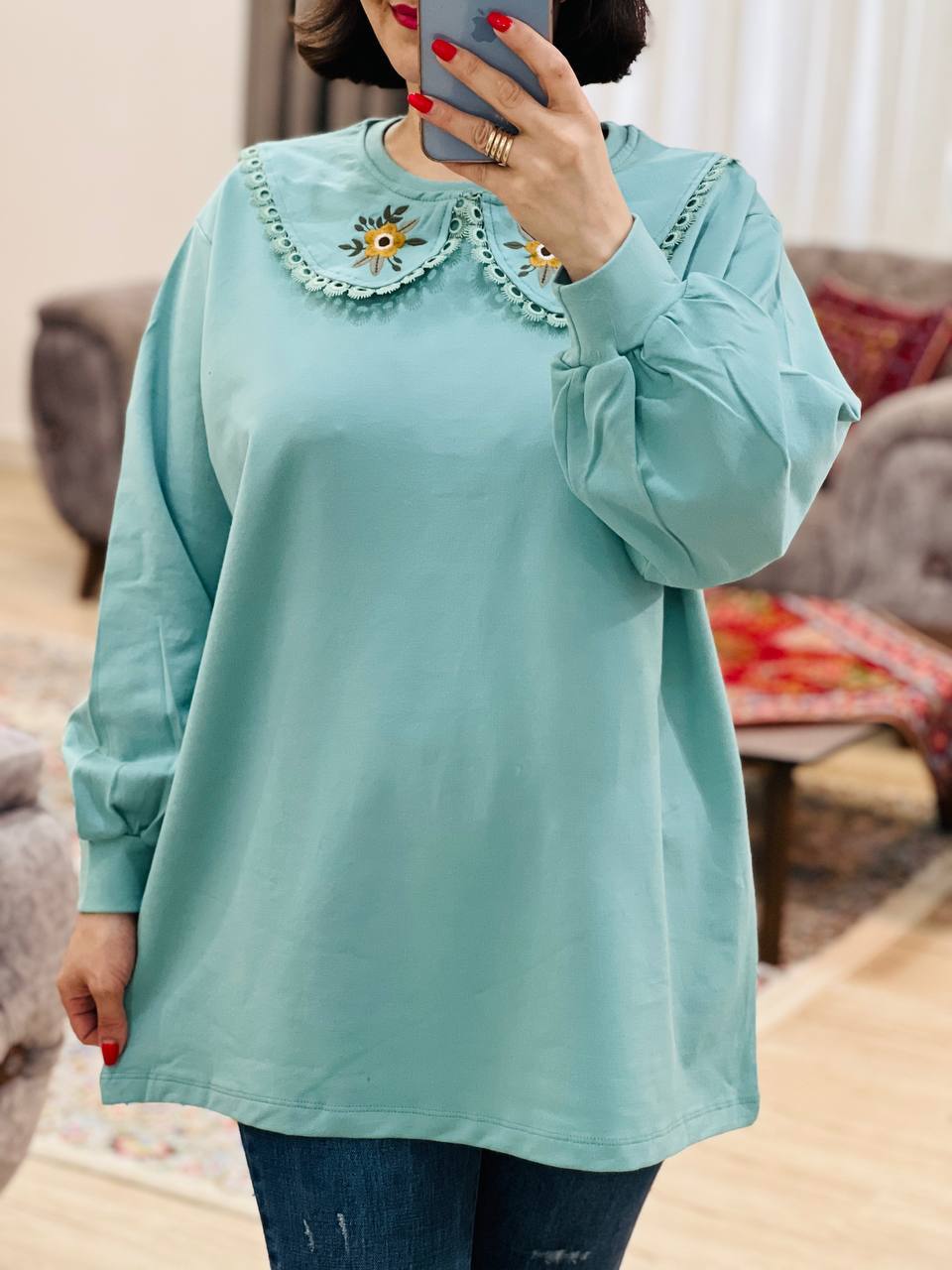 فری سایز مناسب 44 تا 52 / دور سینه 122 / قد بلوز 73 / قدآستین 52 / سرشانه 14