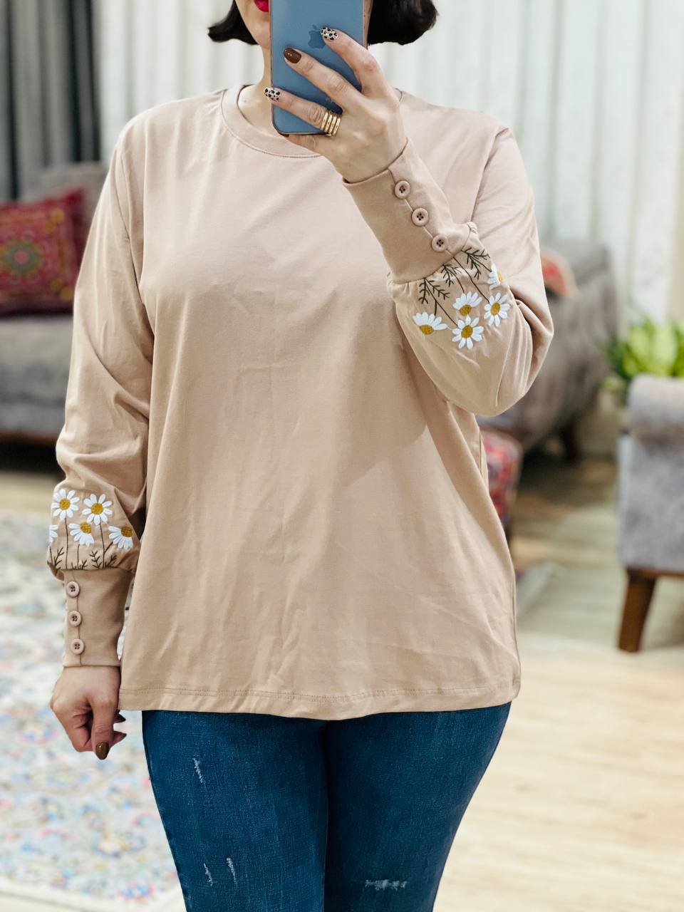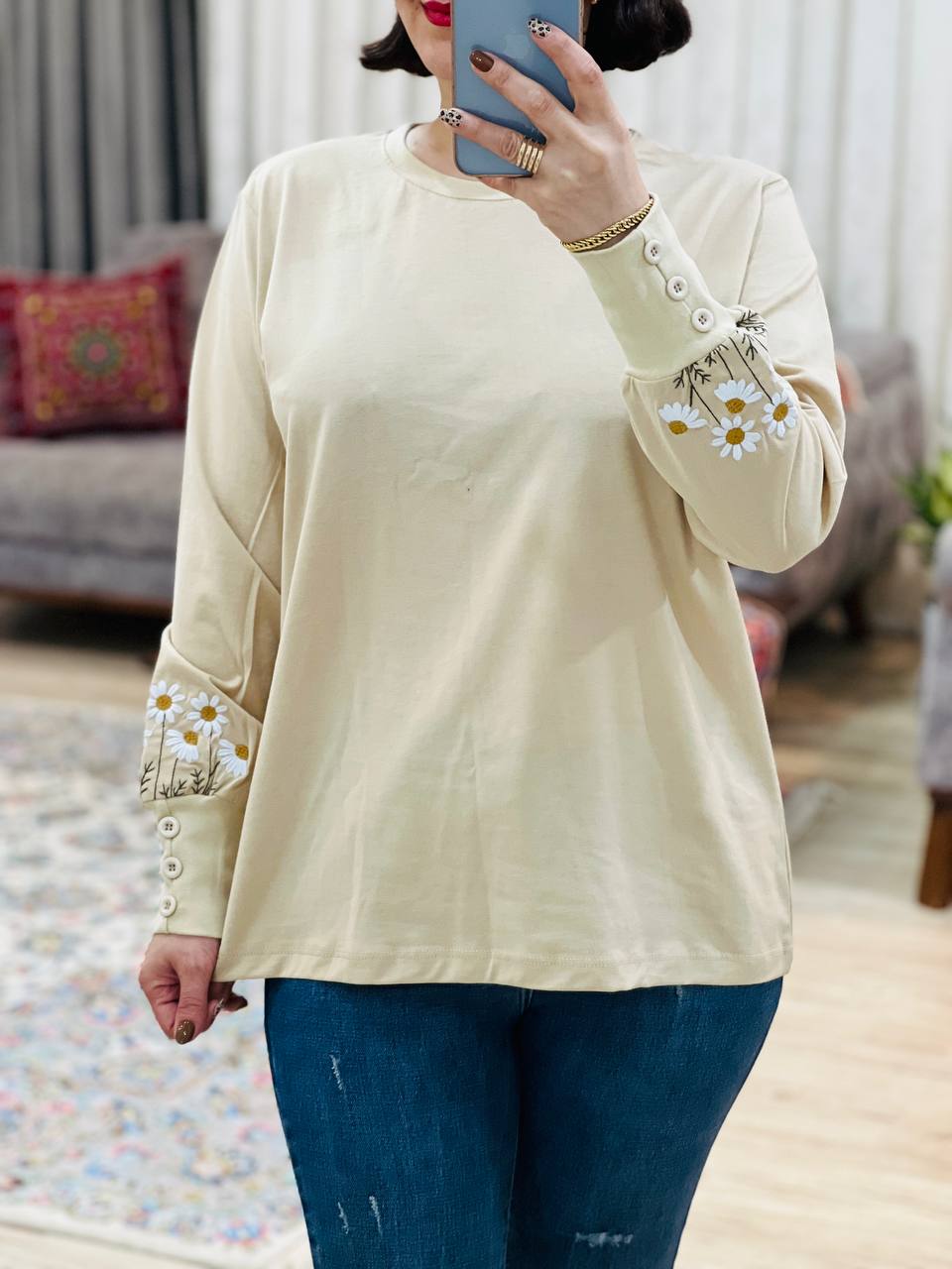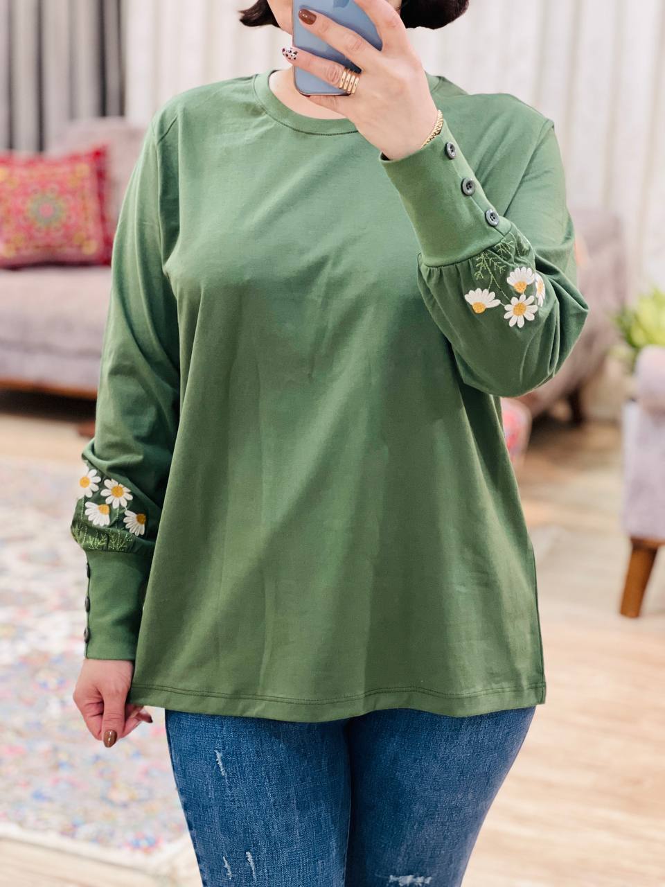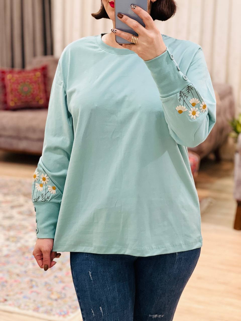 جنس پنبه دورو پاییه / آستین دکمه دارد / دکمه ها نما هست / مچ گلدوزی شده / رنگ ثابت / حدودا 10 سانت کشسانی دارد / قواره ی هر تولیدی با تولیدی دیگر متفاوت است لطفا حتما سانت در نظر بگیرید.