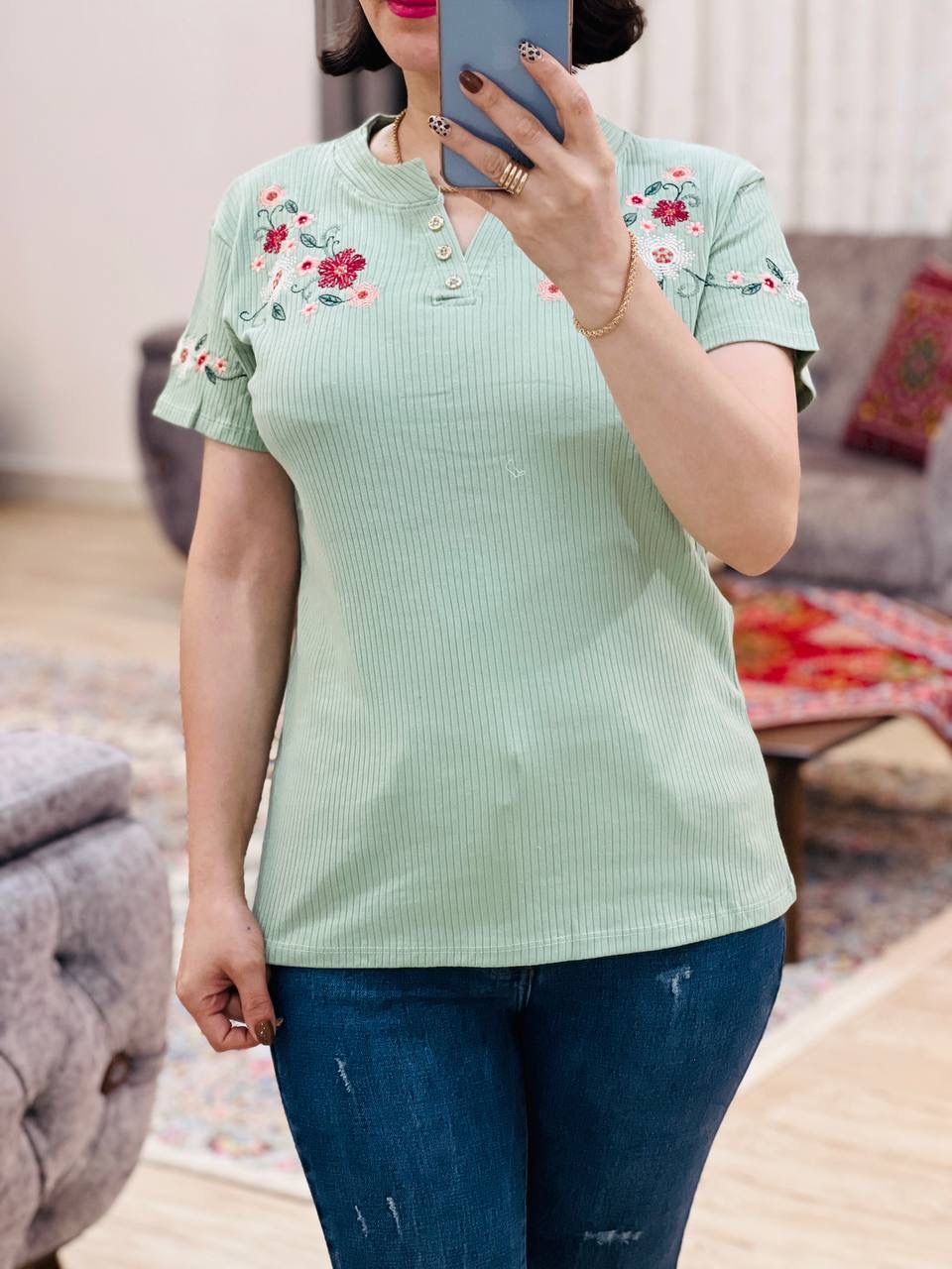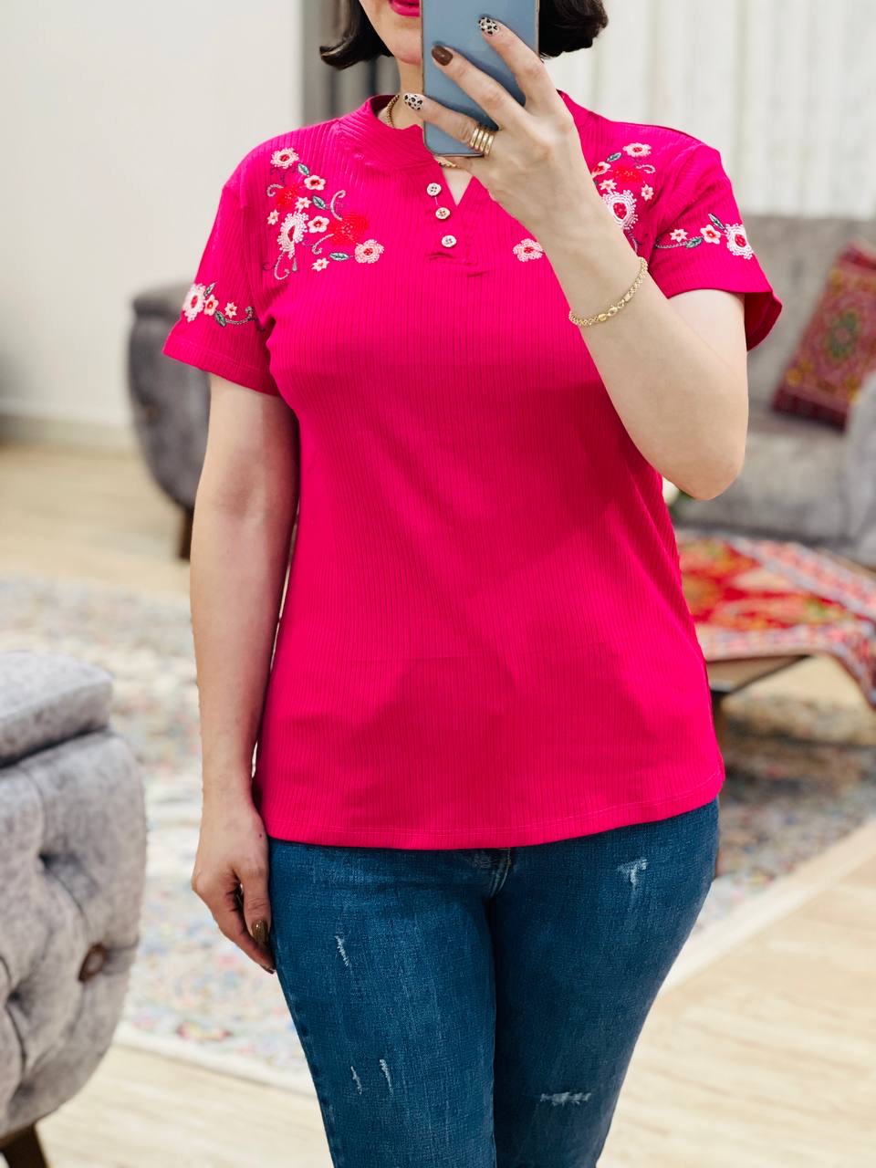 مناسب 38 تا 46 / دور سینه 92 / قد تیشرت 65 / قد آستین 14 / سرشانه 14