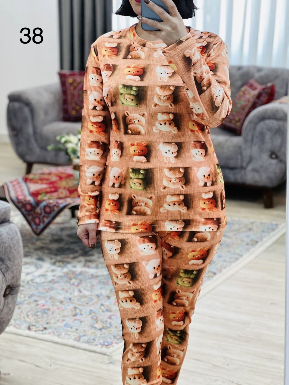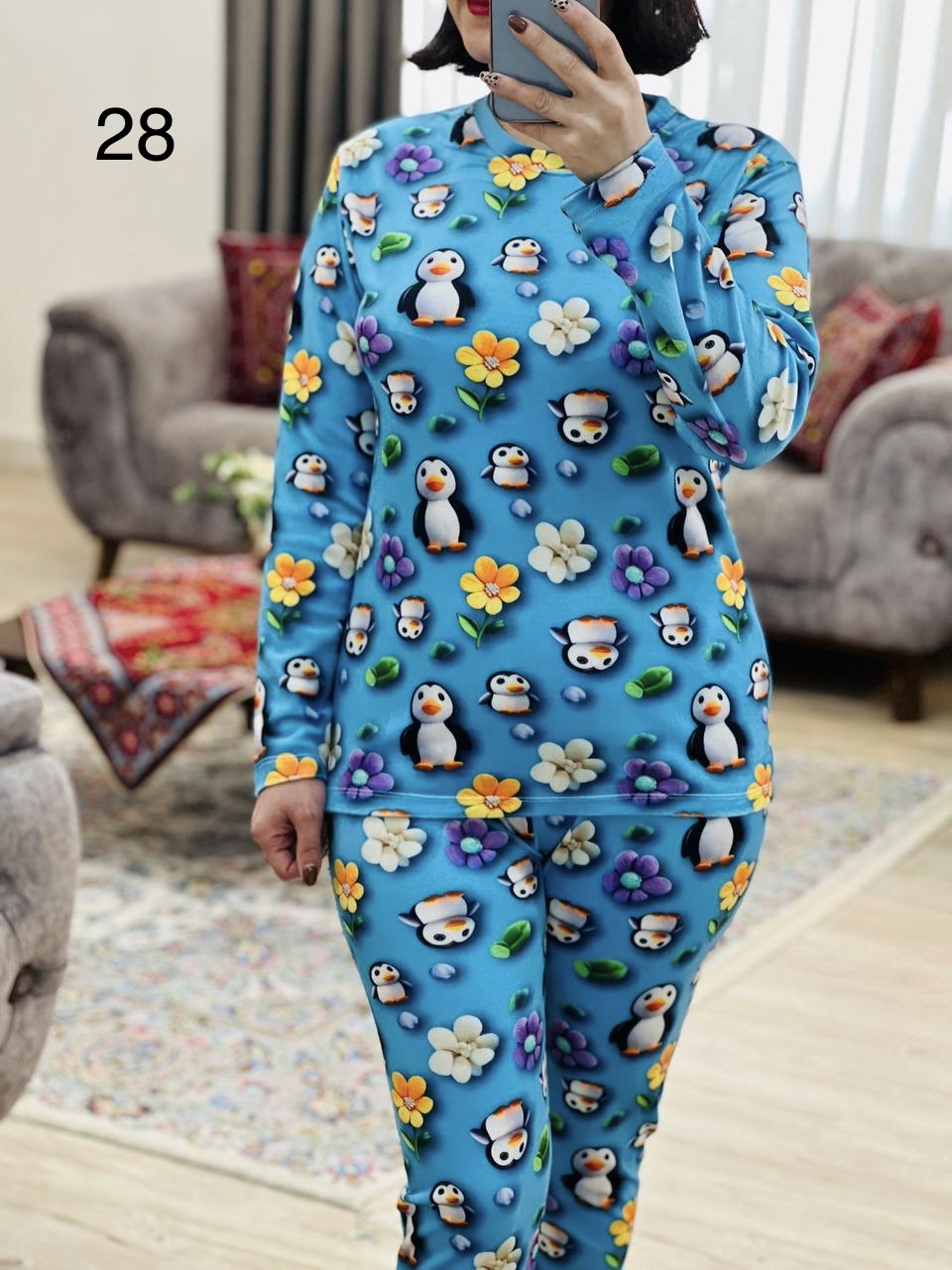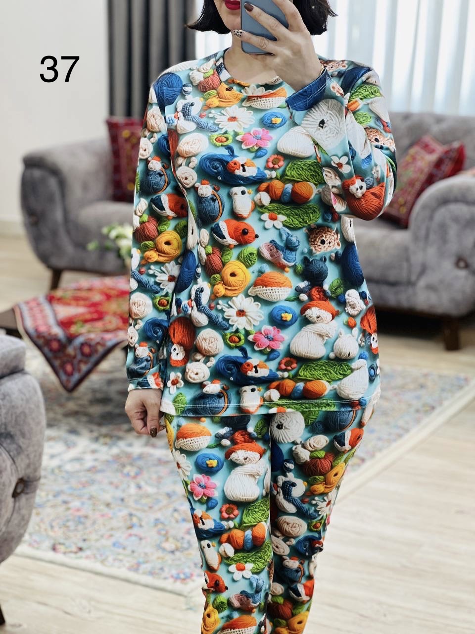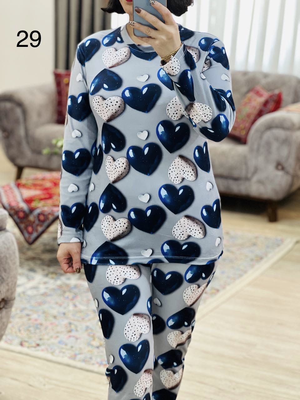 مناسب 36 تا 44 / دور سینه 96 / قد بلوز 65 / قد آستین 56 / سرشانه 16 / قد شلوار 95 / فاق 32 / دور ران 50 / تمام سانتها بدون کشسانی نوشته شده