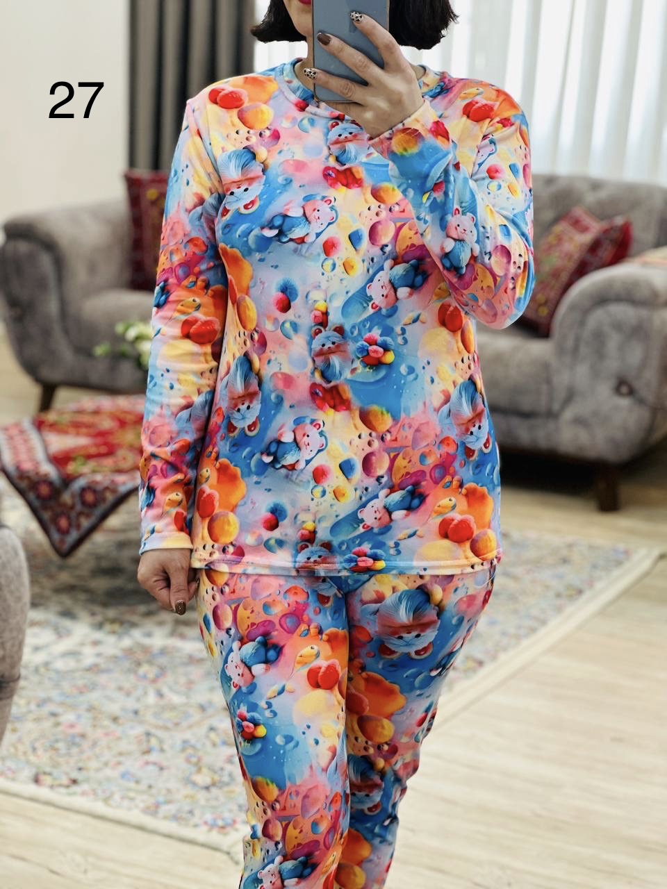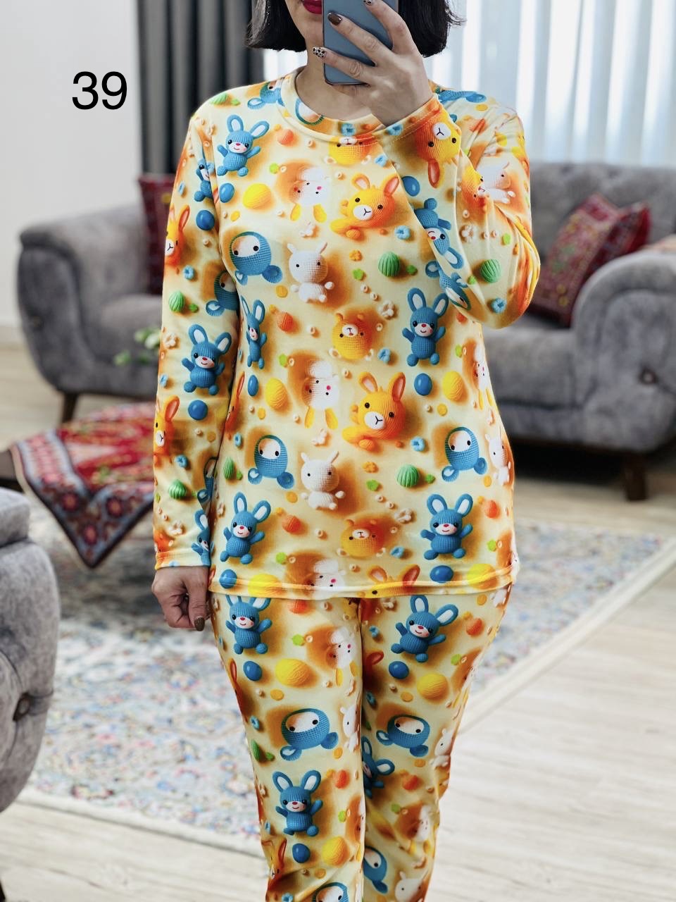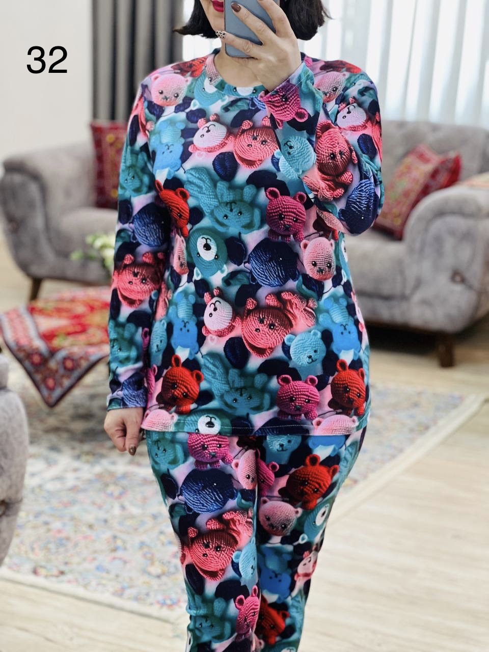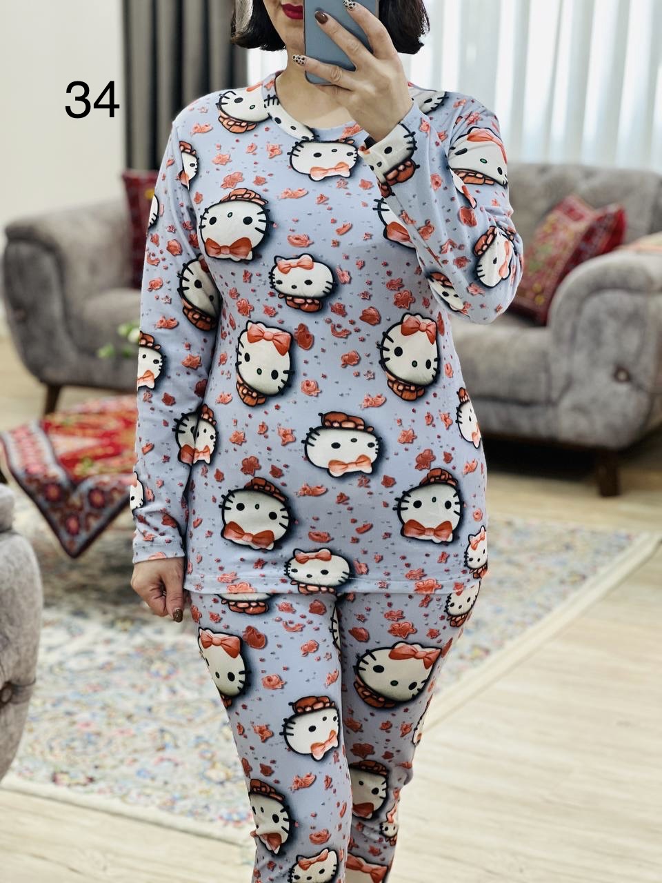 مناسب 36 تا 44 / دور سینه 96 / قد بلوز 65 / قد آستین 56 / سرشانه 16 / قد شلوار 95 / فاق 32 / دور ران 50 / تمام سانتها بدون کشسانی نوشته شده