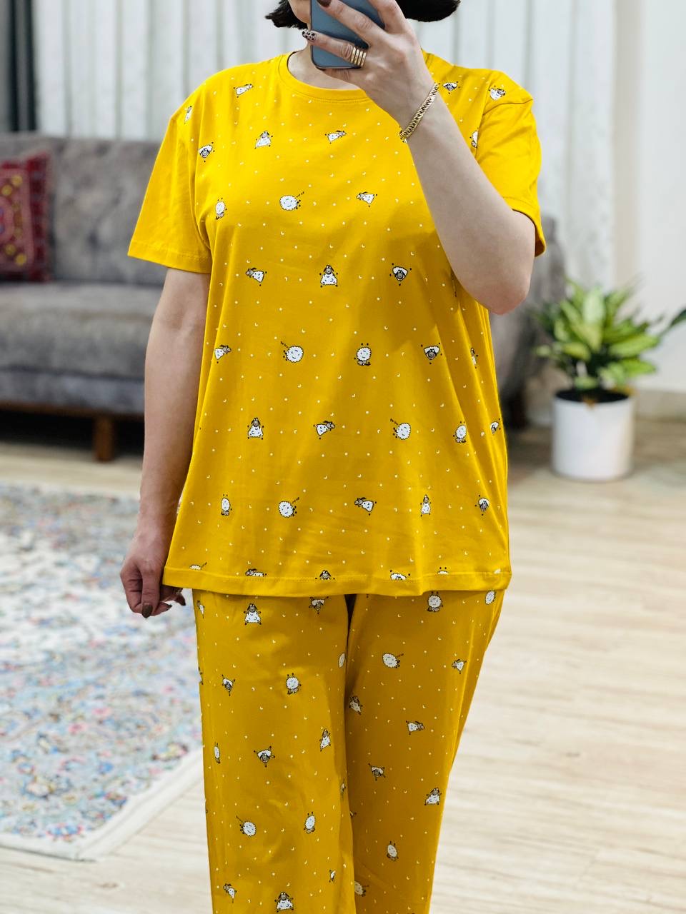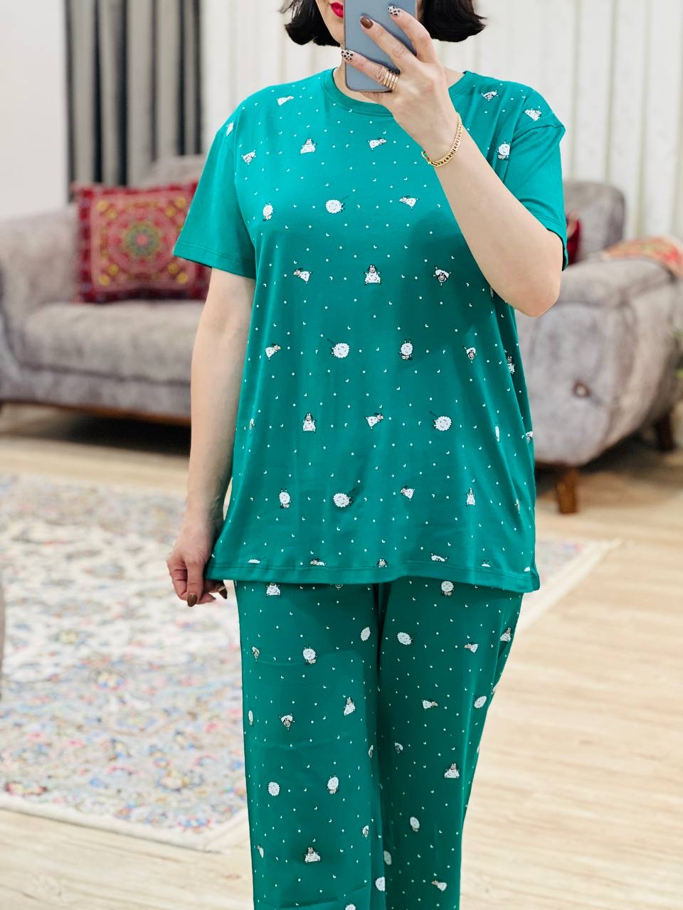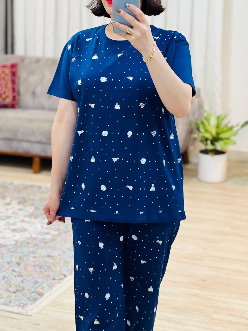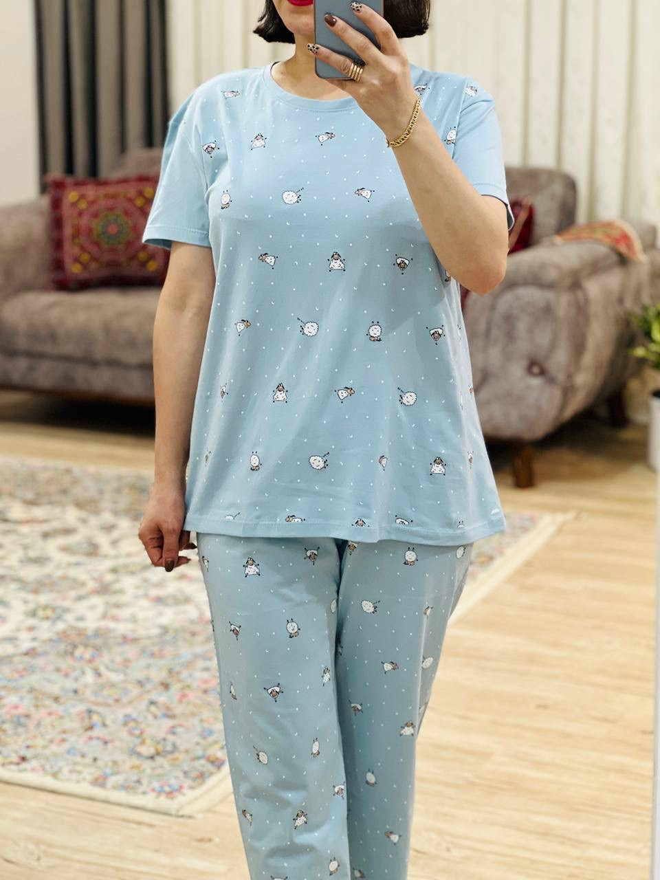 مناسب 38 تا 46 / دور سینه 112 / قد تیشرت 68 / قد آستین 17 /سرشانه 17 / قد شلوار 94 / فاق 31 / دور ران 64