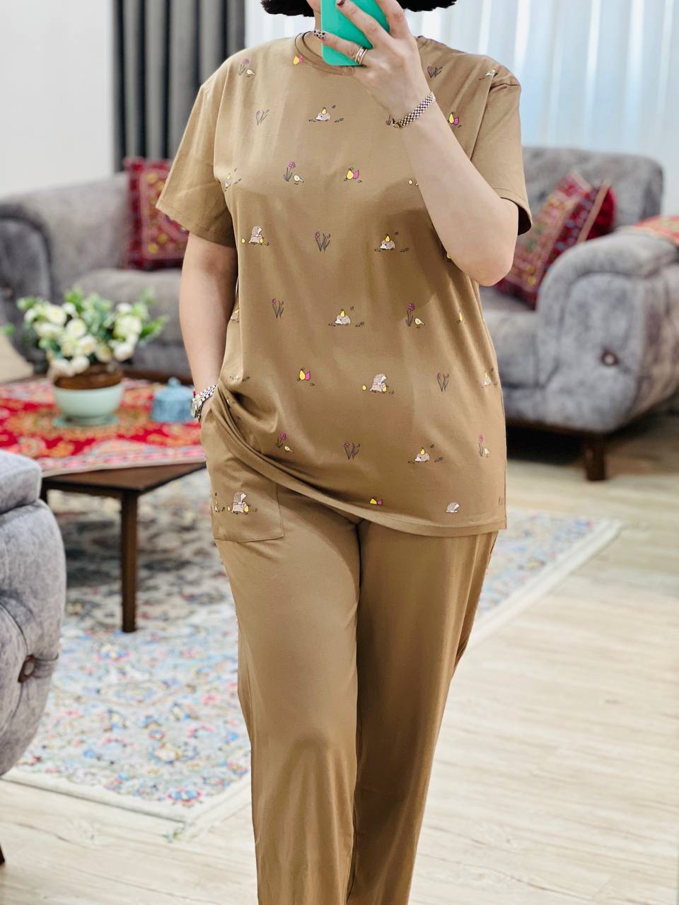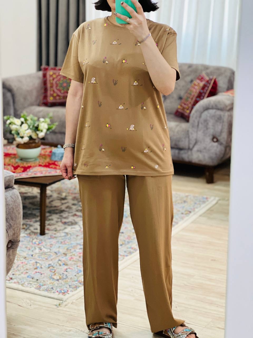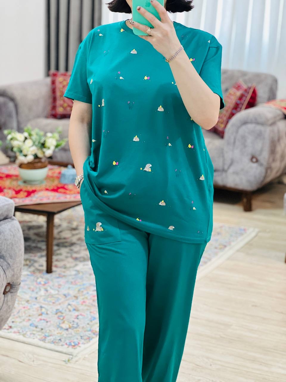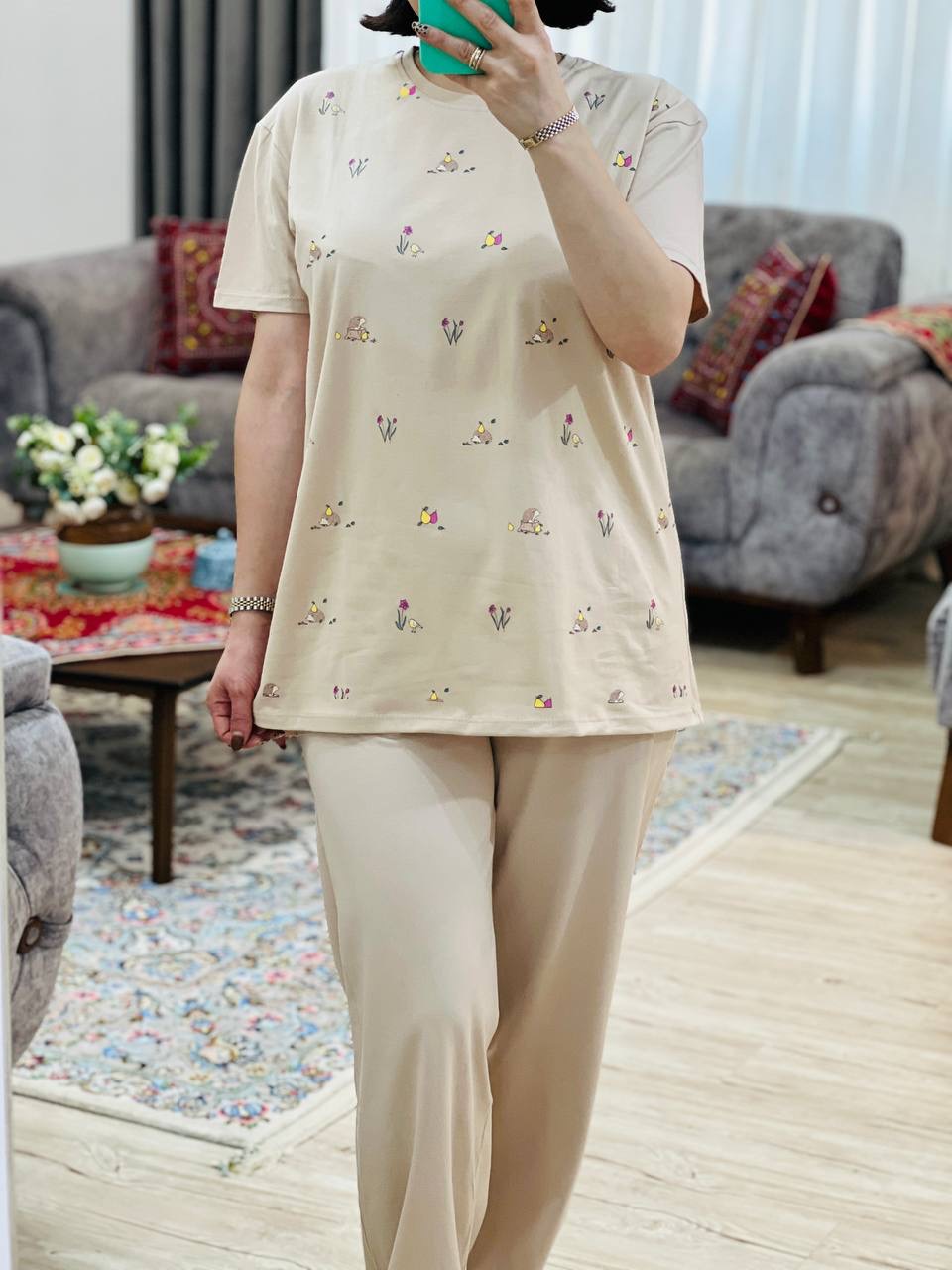 مناسب 38 تا 46 / دور سینه 112 / قد تیشرت 68 / قد آستین 17 / سرشانه 17 / قد شلوار 94 / فاق 31 / دور ران 64 /تمام سانتها بدون کشسانی نوشته شده
