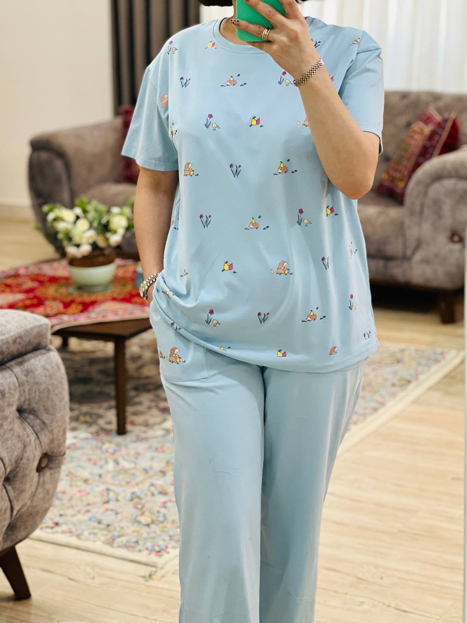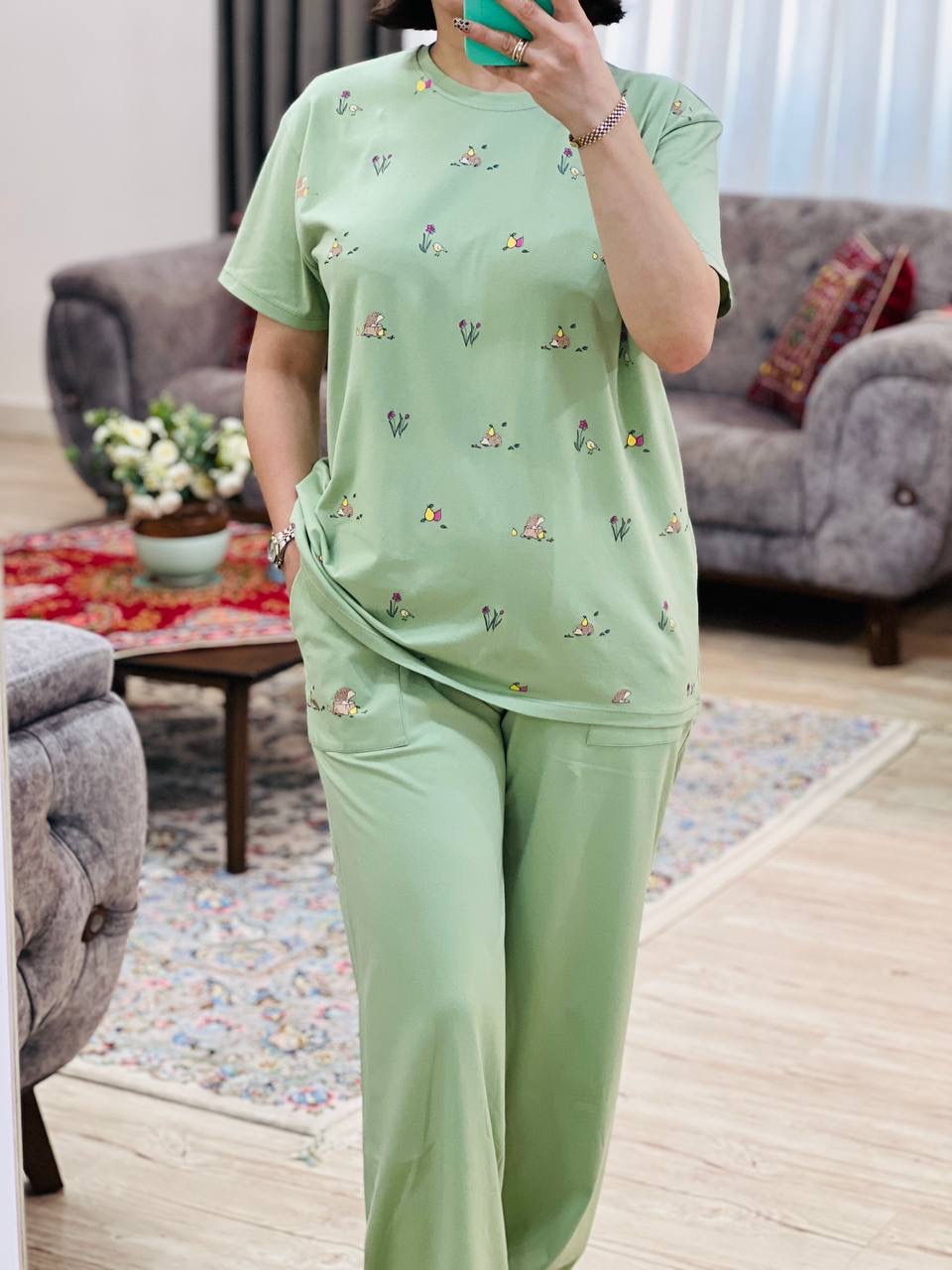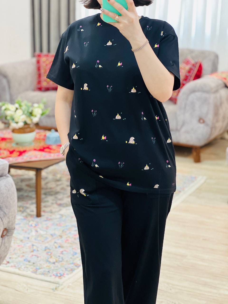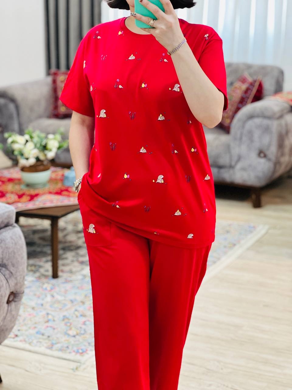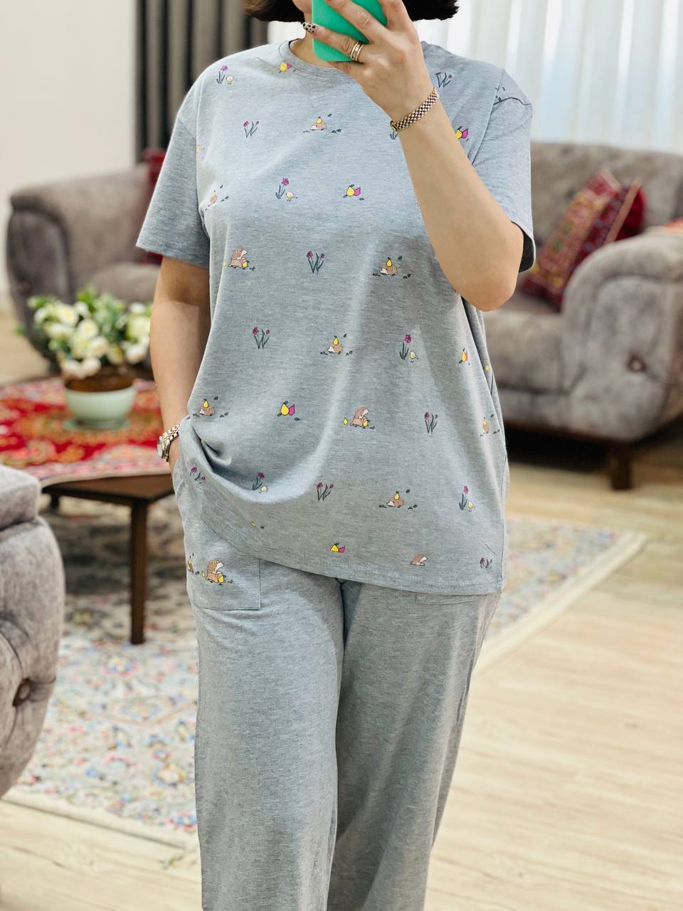 مناسب 38 تا 46 / دور سینه 112 / قد تیشرت 68 / قد آستین 17 / سرشانه 17 / قد شلوار 94 / فاق 31 / دور ران 64 /تمام سانتها بدون کشسانی نوشته شده