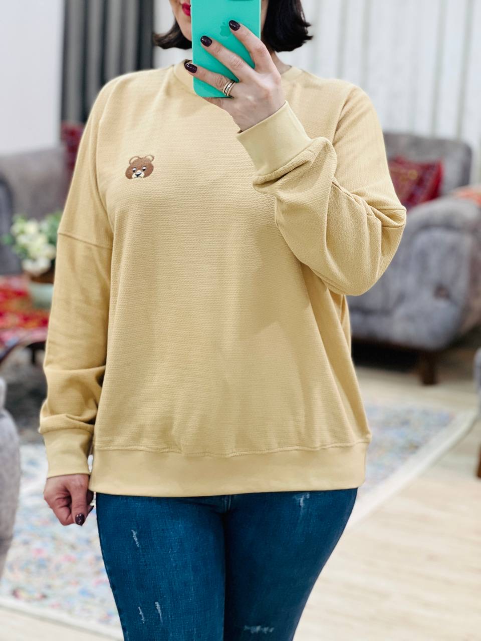 جنس پنبه ژاکارد / حدودا 10 سانت کشسانی دارد / قواره آزاد / گلدوزی خرسی دارد / سرشانه افتاده / رنگ ثابت / قواره ی هر تولیدی با تولیدی دیگر متفاوت است لطفا حتما سانت در نظر بگیرید