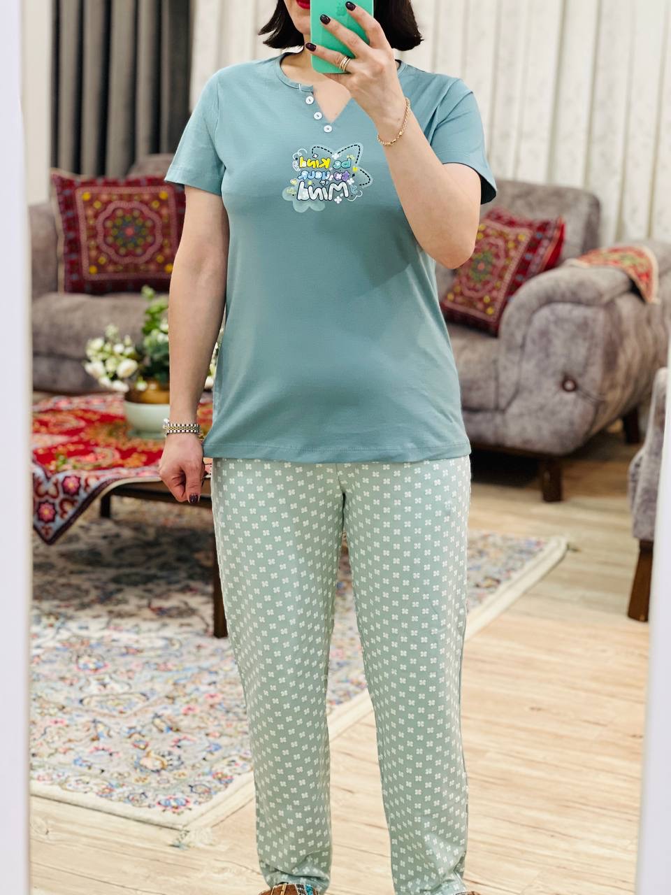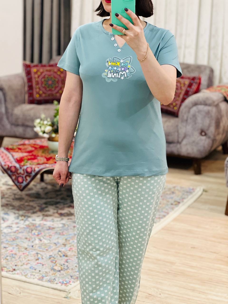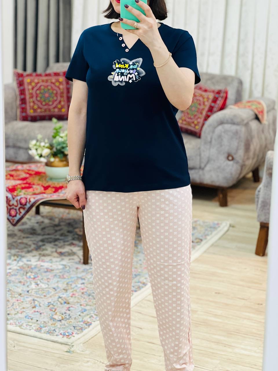 مناسب 36 تا 38 / دور سینه 92 / قد تیشرت 64 / قد آستین 19 / قد شلوار 95 / فاق 30