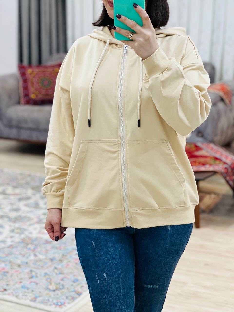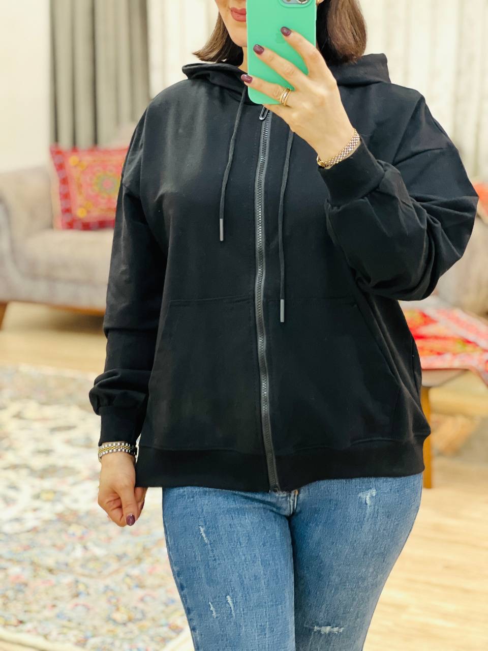 جنس دورس ر/ حدودا 10 سانت کشسانی دارد / جلو زیپ دارد / کلاه دارد / رنگ ثابت / قواره ی هر تولیدی با تولیدی دیگر متفاوت است لطفا حتما سانت در نظر بگیرید