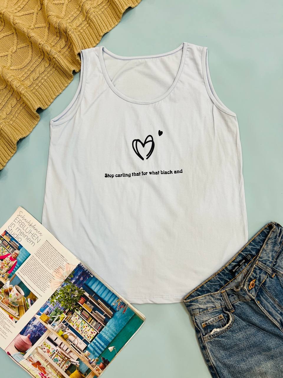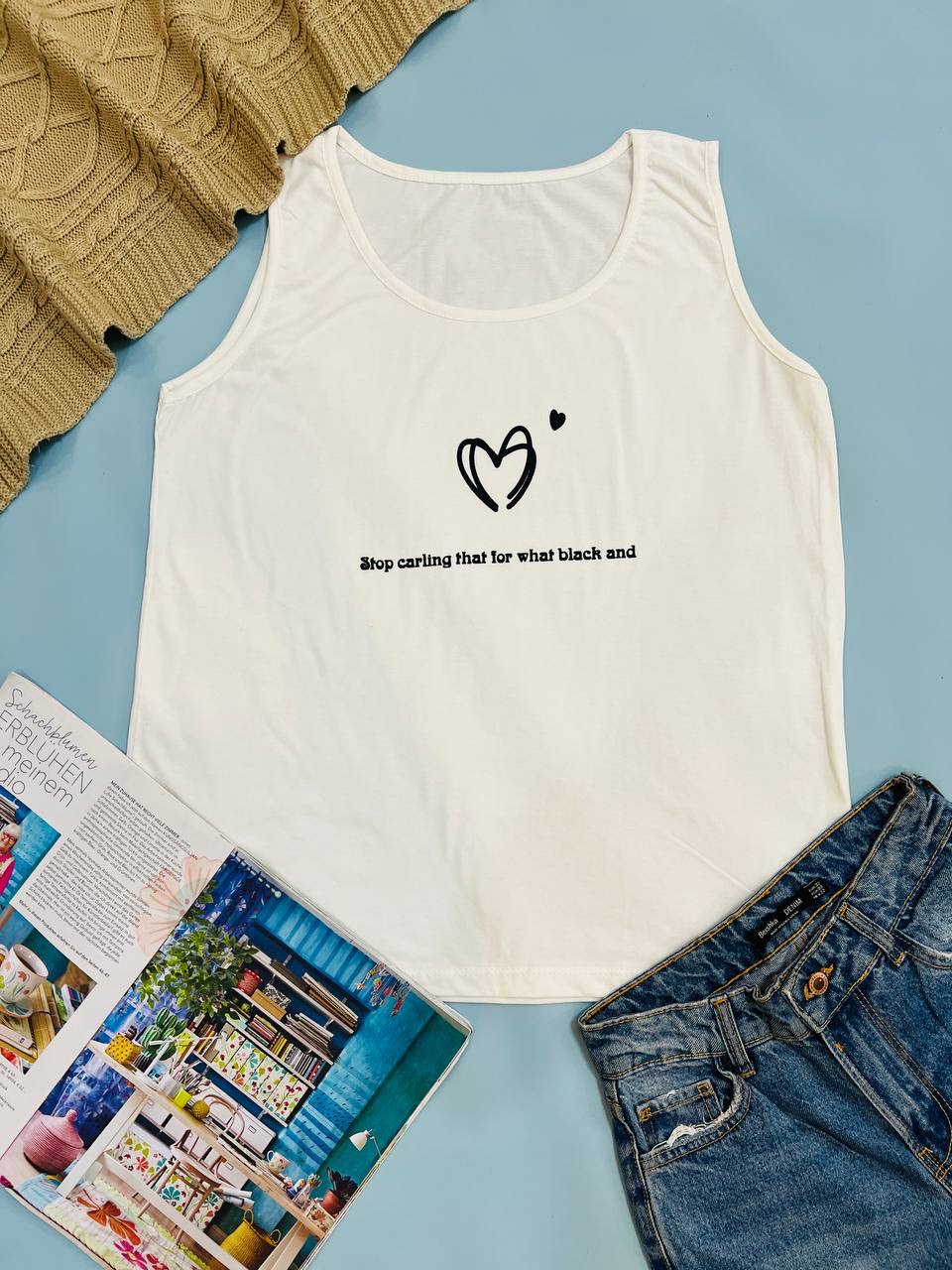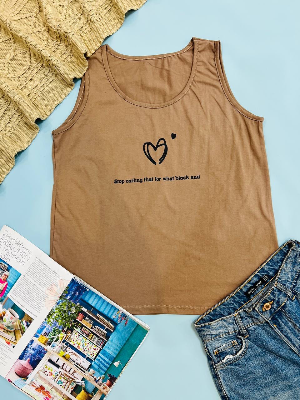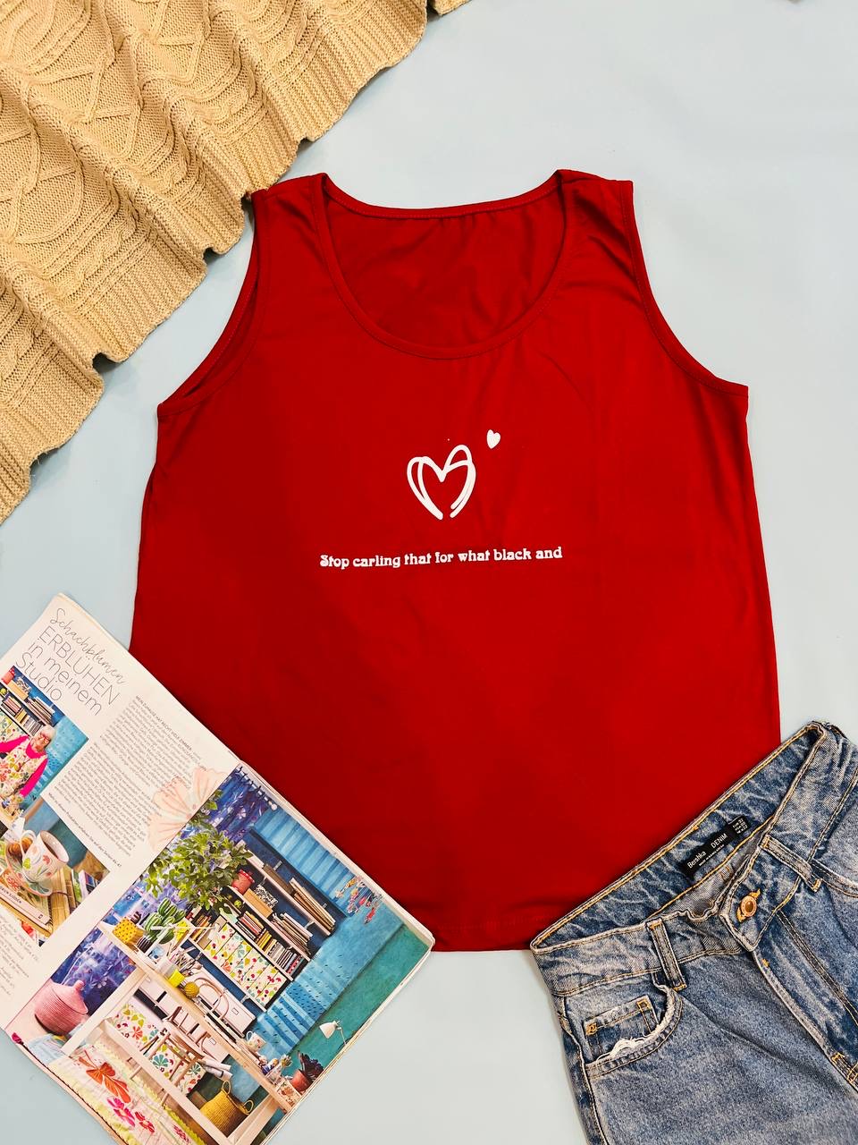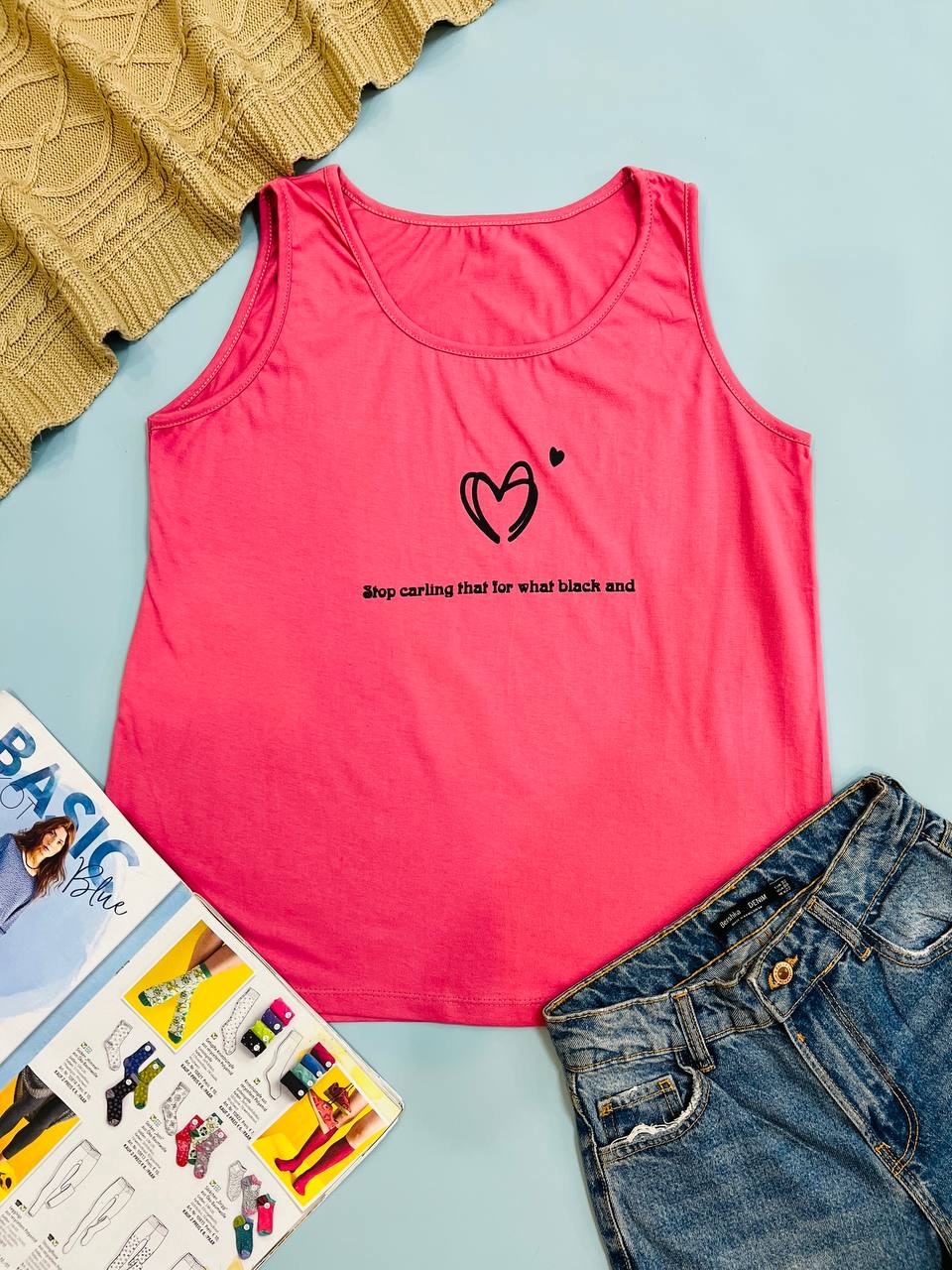 فری سایز مناسب 40 تا 48 / دور سینه 104 / قد تاپ 68 / تمام سانتها بدون کشسانی نوشته