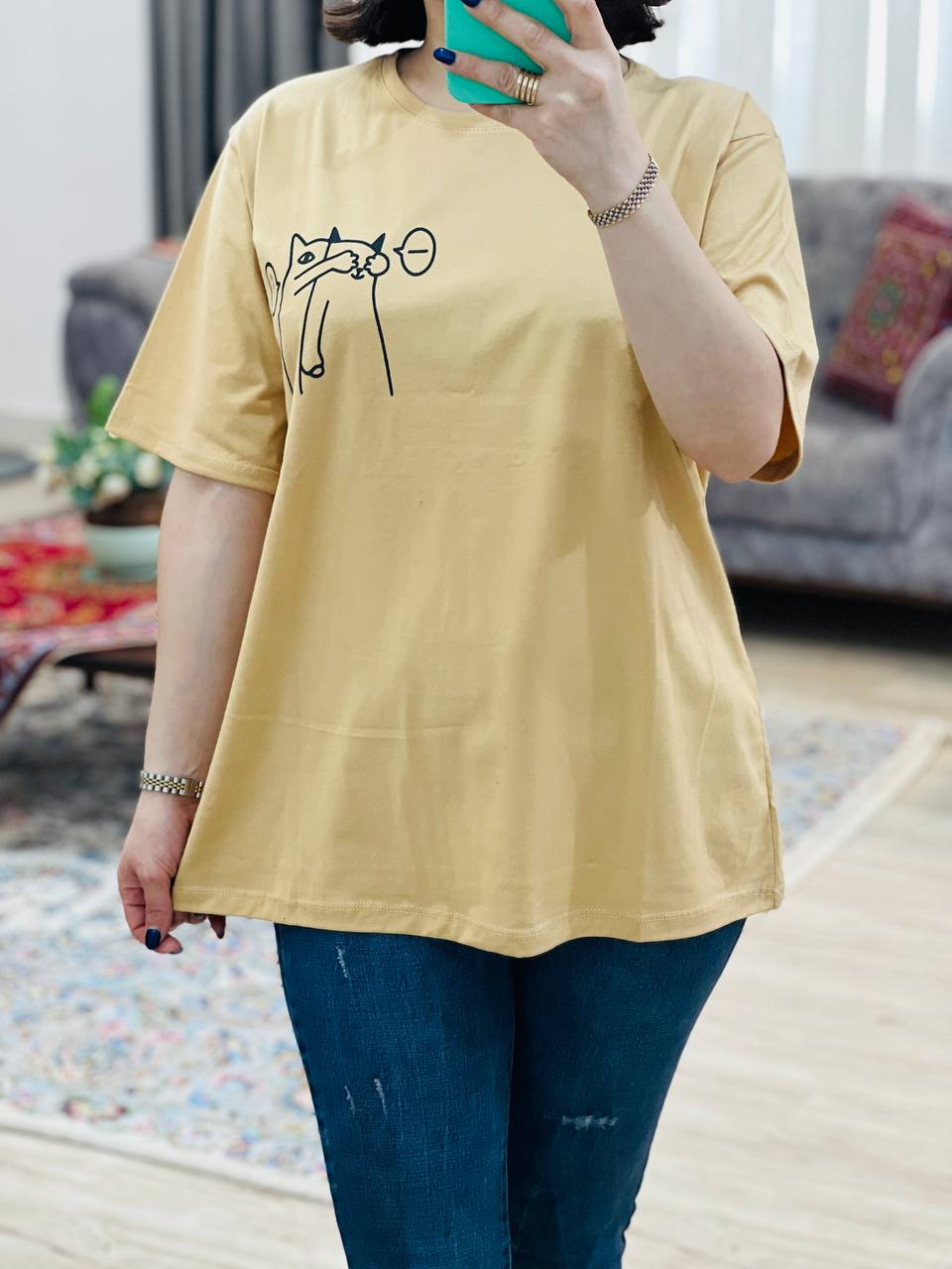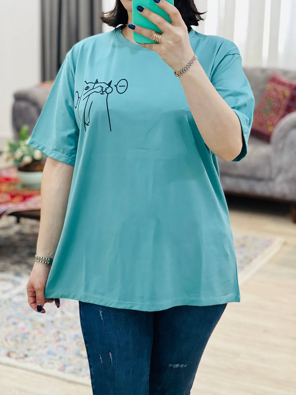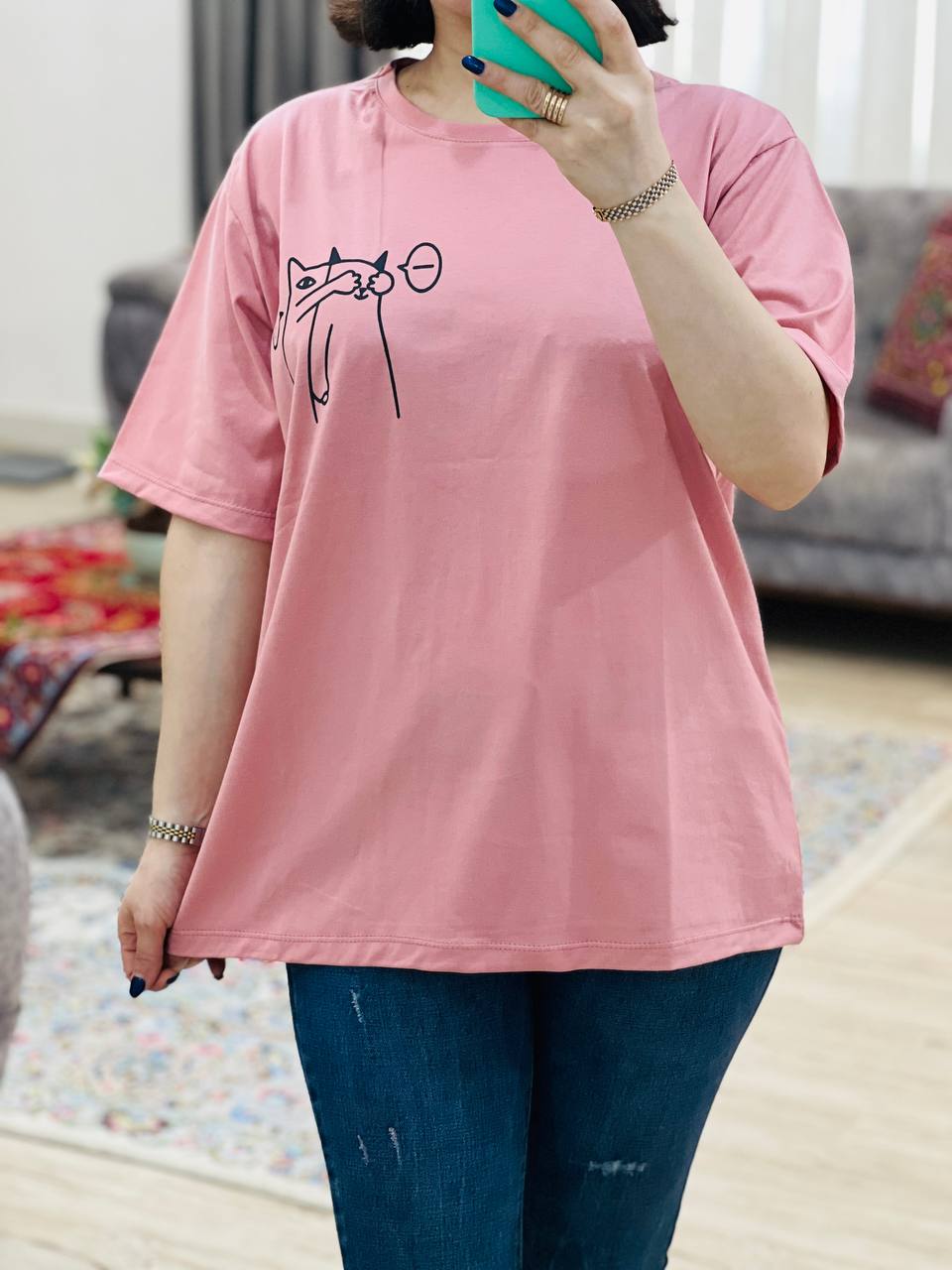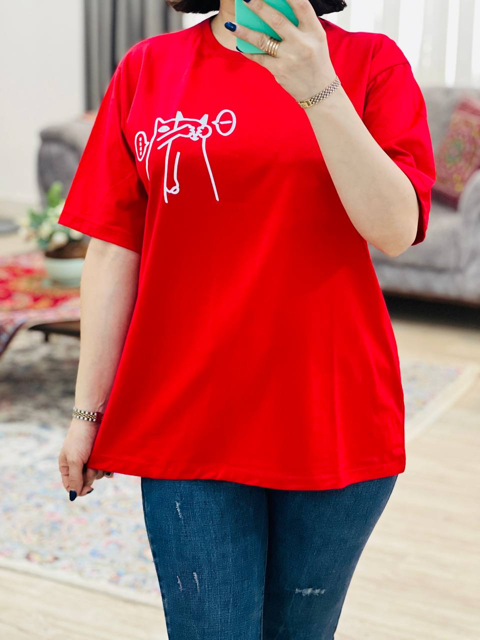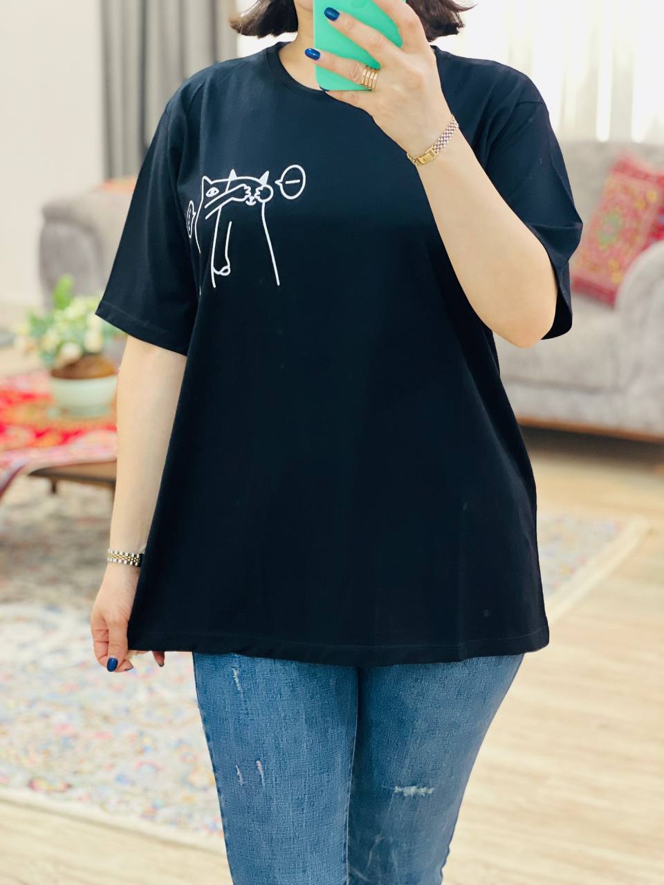 مناسب 38 تا 46 / دور سینه 112 / قد تیشرت 68 / قد آستین 24 / سرشانه 13